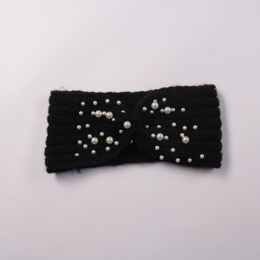 Повязка на голову Torelli из мягкого полиэстера, чёрного цвета, украшена жемчужными бусинами. Подойдёт для прохладной погоды и как акцент в повседневных образах. Формат one size, удобно держится на голове.