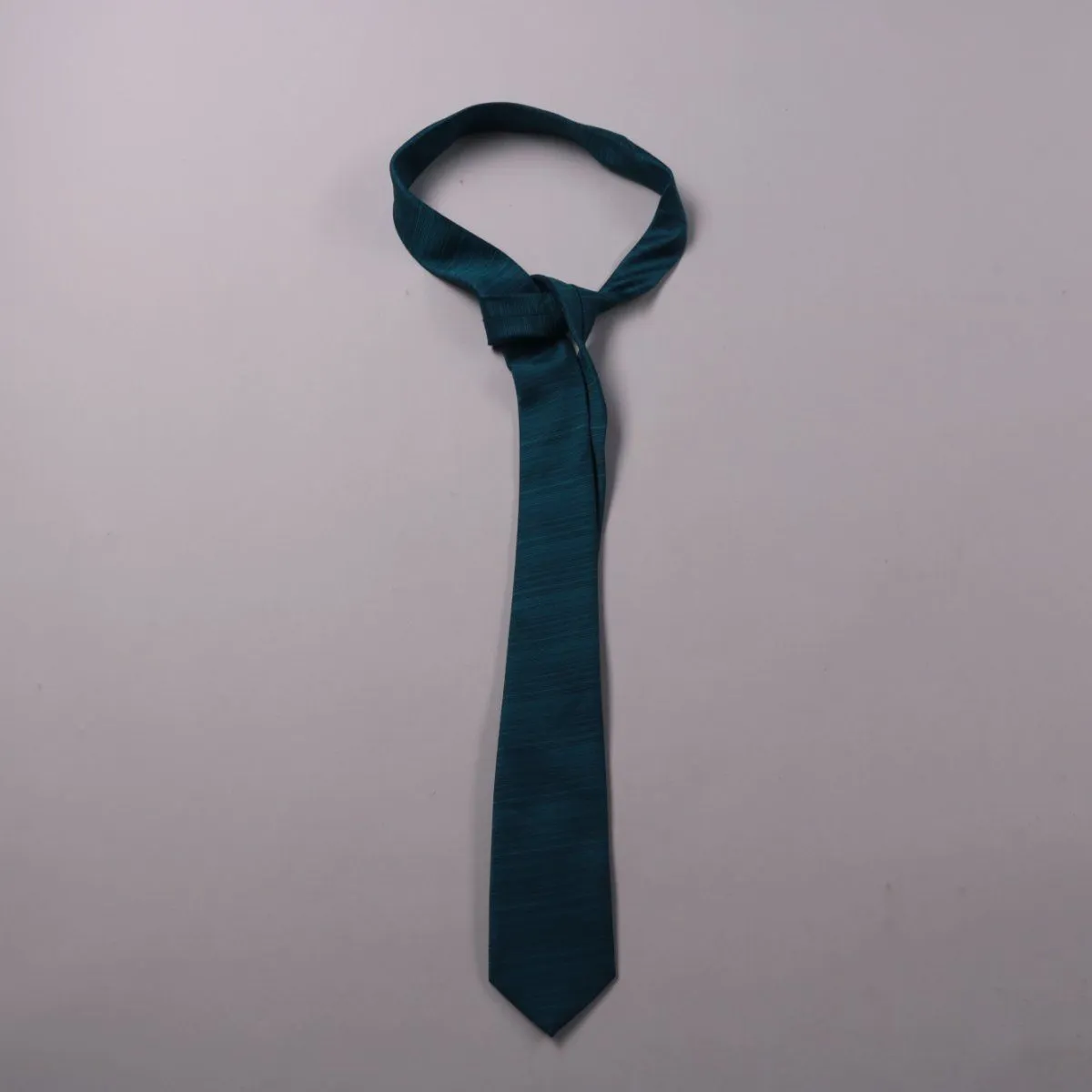 Мужской галстук в бирюзово-синем оттенке с тонкой фактурной полоской. Подойдёт для офиса, собеседований и торжественных мероприятий, легко сочетается с однотонными рубашками. Практичен тем, что размер one size и быстро приводит образ в аккуратный вид.