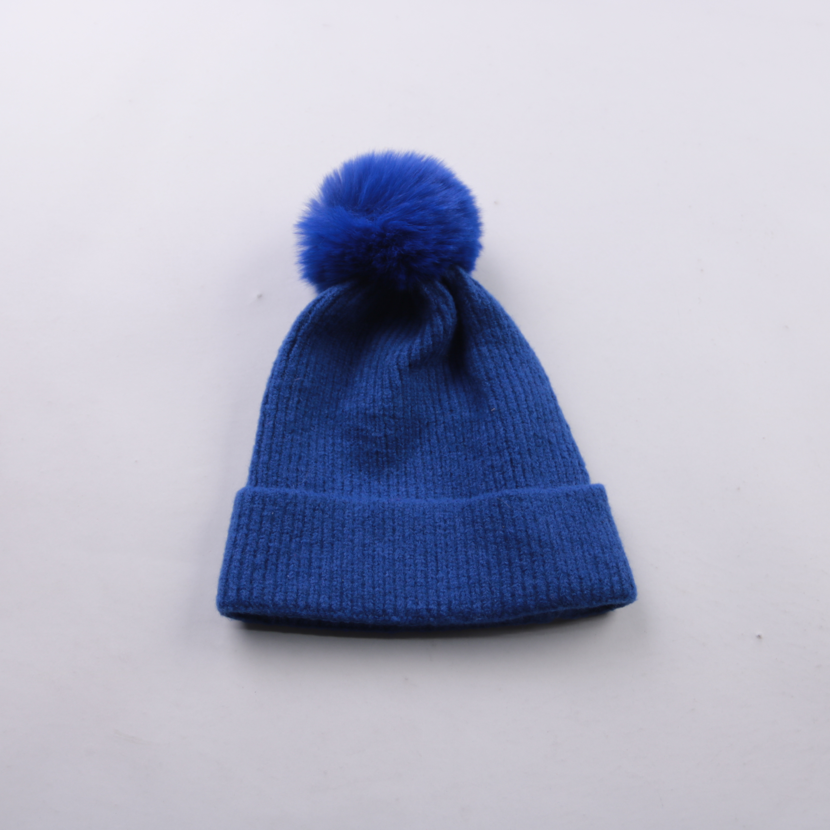 Вязаная шапка-бини с помпоном в насыщенном синем цвете, подойдёт для повседневных зимних прогулок и поездок. Мягкая фактурная вязка и широкий отворот помогают лучше удерживать тепло и закрывают уши.