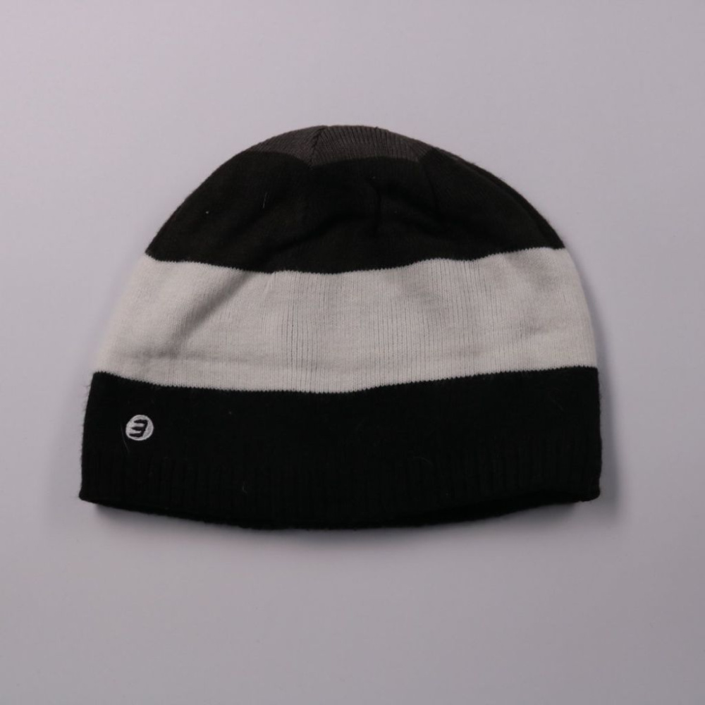 Вязаная шапка бини в чёрно-белую полоску, бренд по бирке не указан. Подойдёт для повседневной носки и прогулок в холодную погоду. Мягкая подкладка делает шапку более тёплой и комфортной.