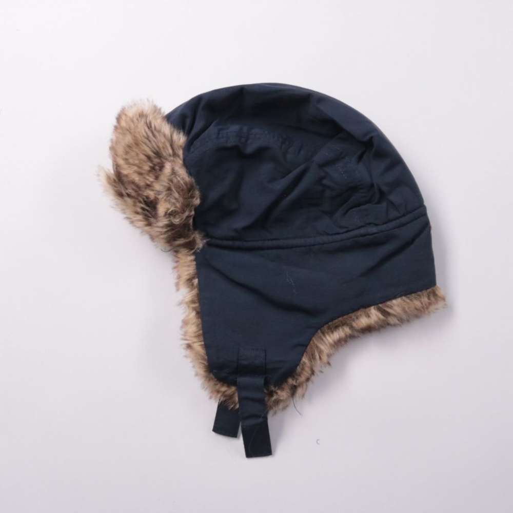 Зимняя шапка-ушанка H&M тёмно-синего цвета с меховой отделкой по краю и на ушках. Подойдёт для холодной погоды и прогулок на улице, ушки можно зафиксировать завязками. Практичный верх из полиамида хорошо защищает от ветра и лёгких осадков.