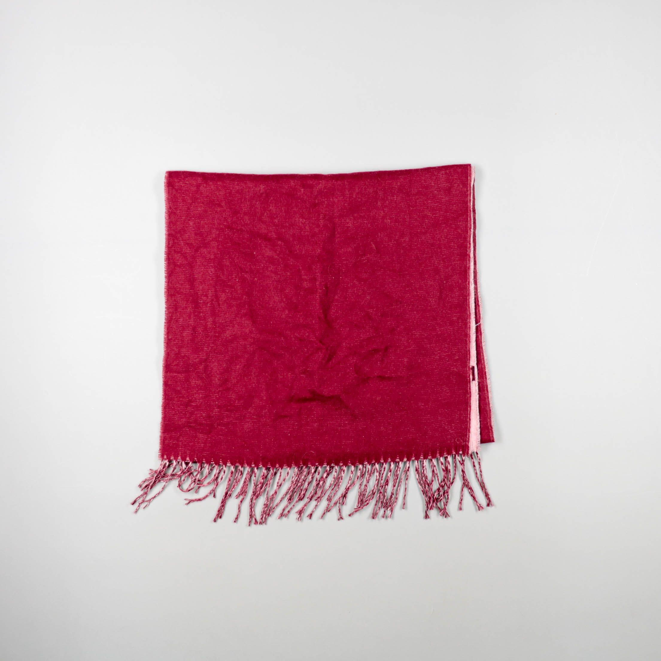 Двухсторонний шарф без указанного бренда в бордово-розовой гамме с бахромой по краям. Подойдёт для демисезона и прохладных летних вечеров, легко сочетается с пальто и куртками базовых цветов. Длинный формат позволяет завязывать разными способами и удоб...