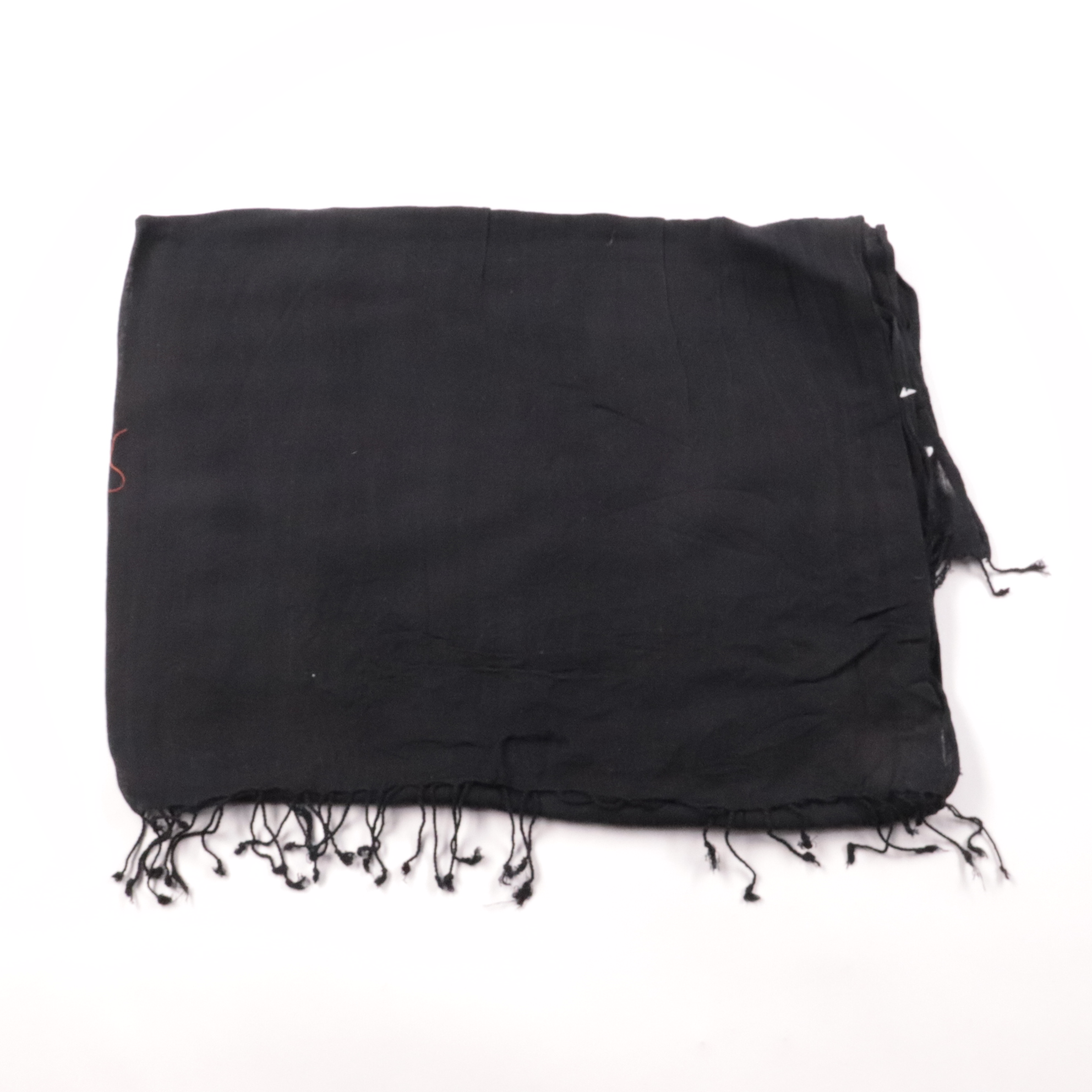 Шарф Esprit чёрного цвета из тонкой мягкой ткани с бахромой по краям. Подойдёт для повседневных образов и на прохладные вечера в межсезонье, удобно носить как шарф или палантин. Легко складывается и почти не занимает места в сумке.