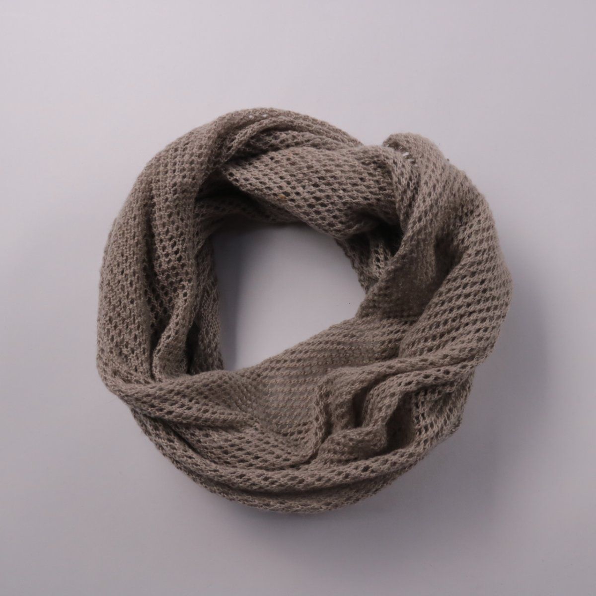Вязаный шарф-снуд в спокойном бежевом оттенке с фактурной сетчатой вязкой. Подойдёт для демисезона и прохладных вечеров, удобно носить под куртку или пальто. Замкнутый круг держит форму и не сползает, быстро надевается без завязывания.