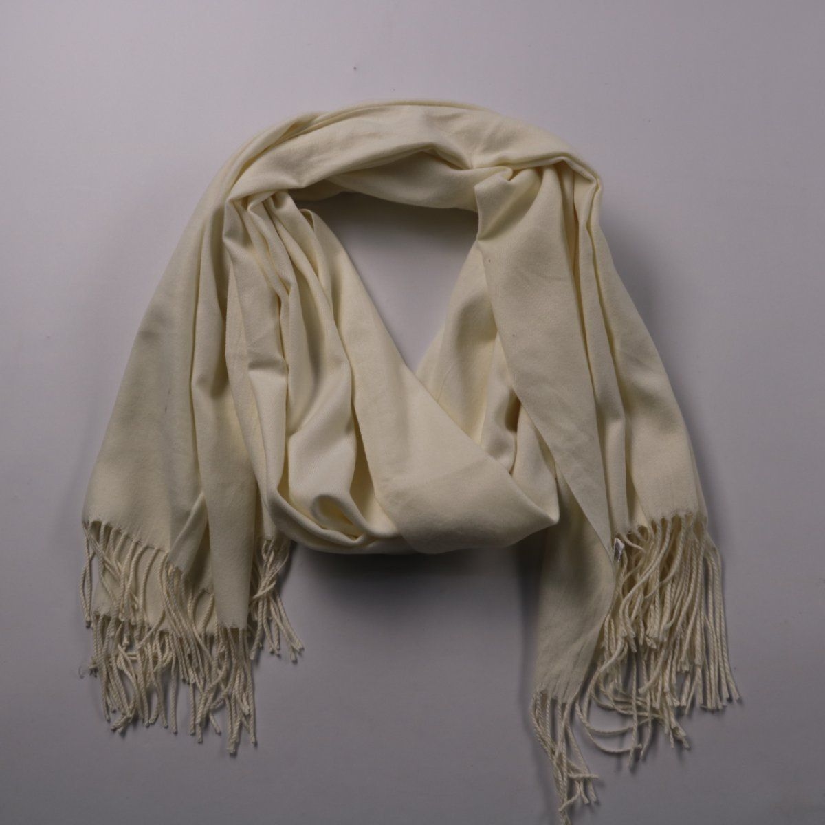 Светлый однотонный шарф с бахромой, мягко драпируется и подходит к повседневным и более строгим образам. Удобен для прохладной погоды и как легкий аксессуар в помещении. Нейтральный цвет легко сочетается с верхней одеждой и базовым гардеробом.