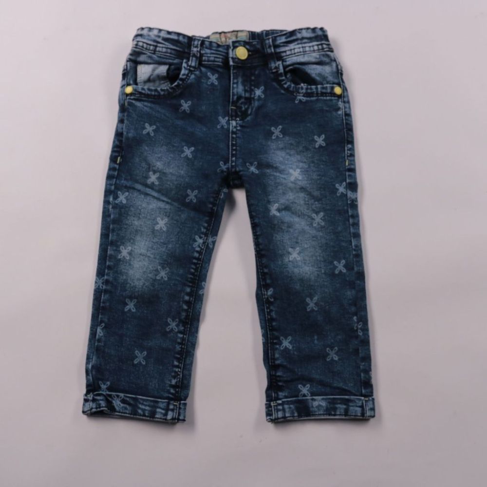 Джинсы Cool Girl из денима с лёгким выбеленным эффектом и мелким принтом по всей поверхности. Подойдут для повседневной носки в садик, на прогулки и в поездки. За счёт добавления эластана ткань чуть тянется и не сковывает движения.