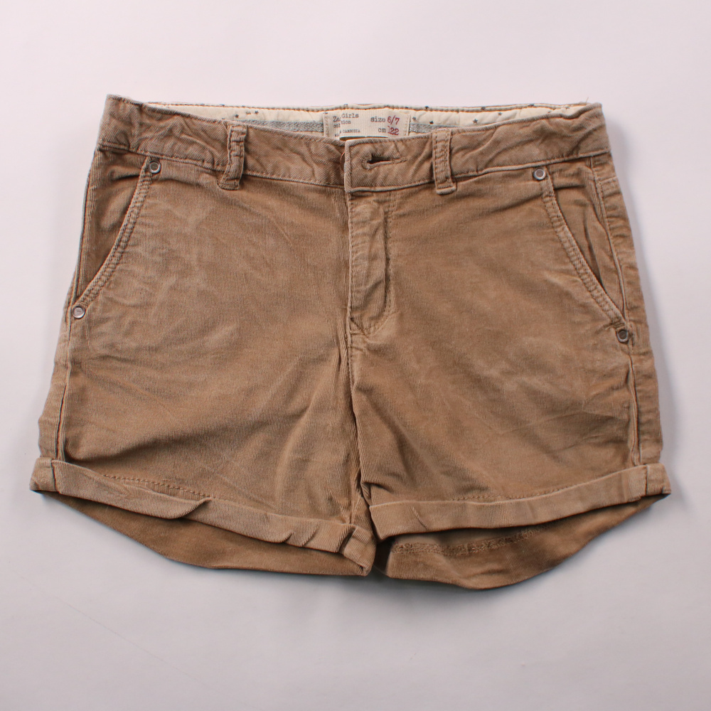 Шорты Zara Girls из хлопка с добавлением эластана, бежевого цвета, с карманами и отворотами по низу. Подойдут для прогулок и повседневной носки летом или в тёплую погоду. Материал тянется и не сковывает движения.