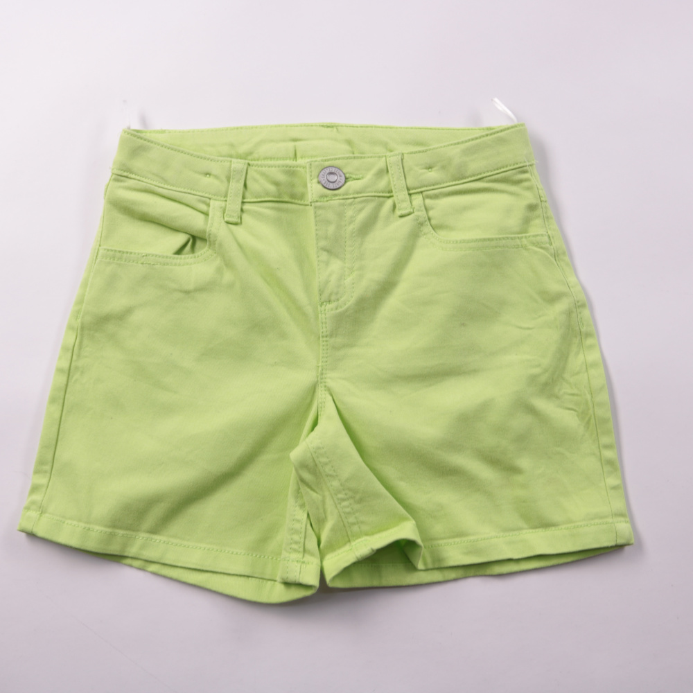 Шорты C&A ярко‑зелёного цвета из хлопка с добавлением эластана, с карманами и застёжкой на пуговицу. Подойдут для лета и тёплой погоды, для прогулок и повседневной носки. Ткань тянется и не сковывает движения.