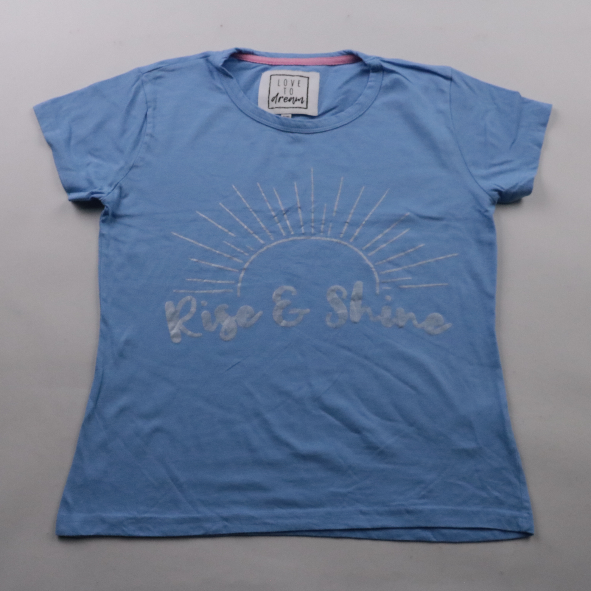 Футболка Love to dream голубого цвета с принтом «Rise & Shine». Подойдёт для повседневной носки летом и в сад/школу. Лёгкая, быстро сохнет после стирки.