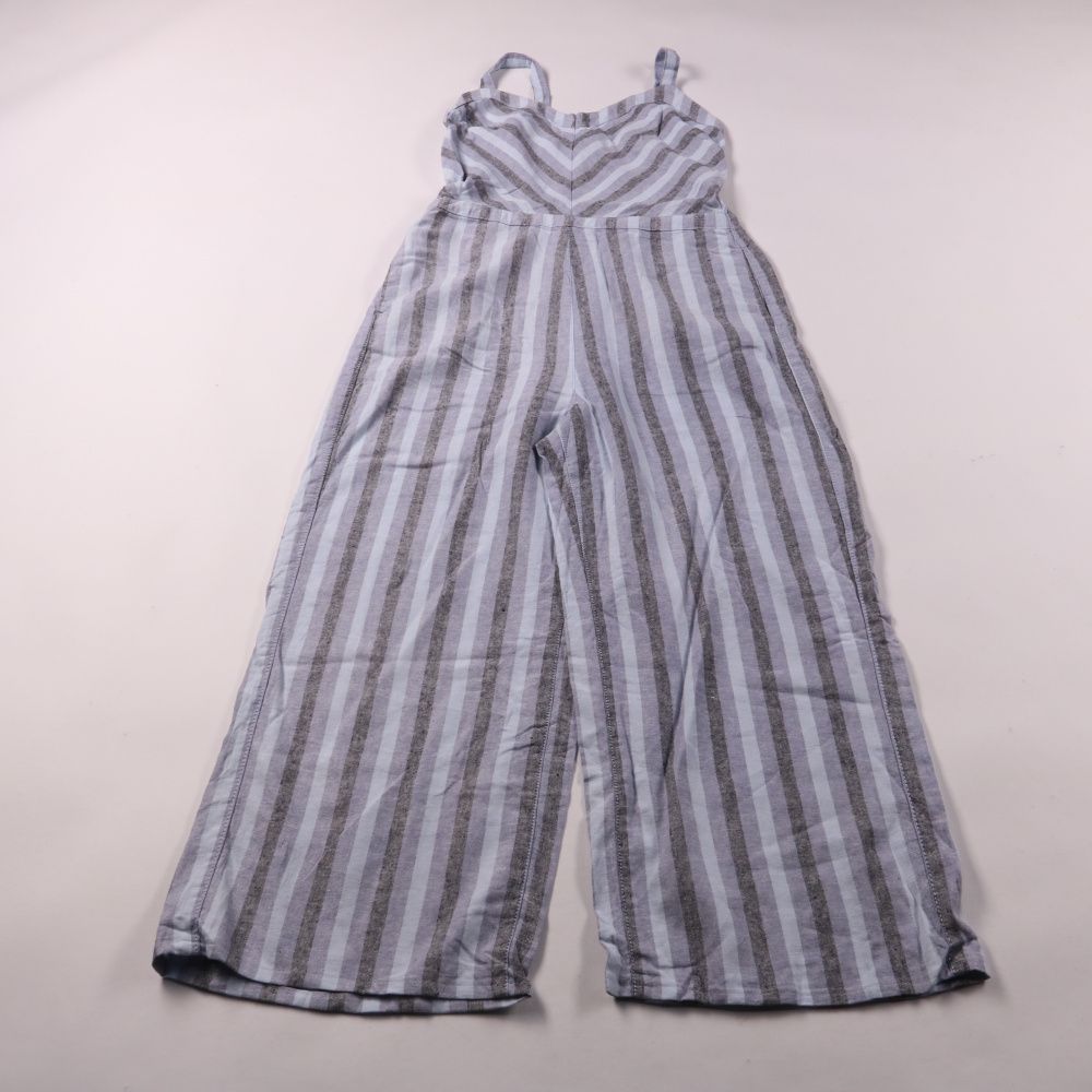 Летний комбинезон на тонких бретелях в серо-белую полоску. Подойдёт для прогулок и поездок в тёплую погоду благодаря свободным широким штанинам. Лёгкая ткань хорошо пропускает воздух и не сковывает движения.