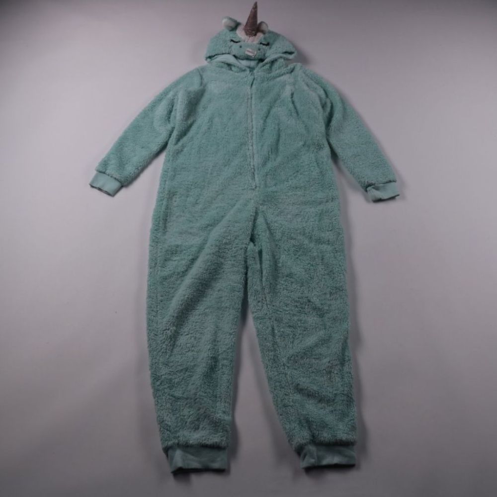 Мягкий плюшевый комбинезон M&S с капюшоном в виде единорога и застёжкой на молнию. Подойдёт для дома и сна в прохладное время, как уютная пижама. Трикотажные манжеты хорошо держат посадку и не задираются.