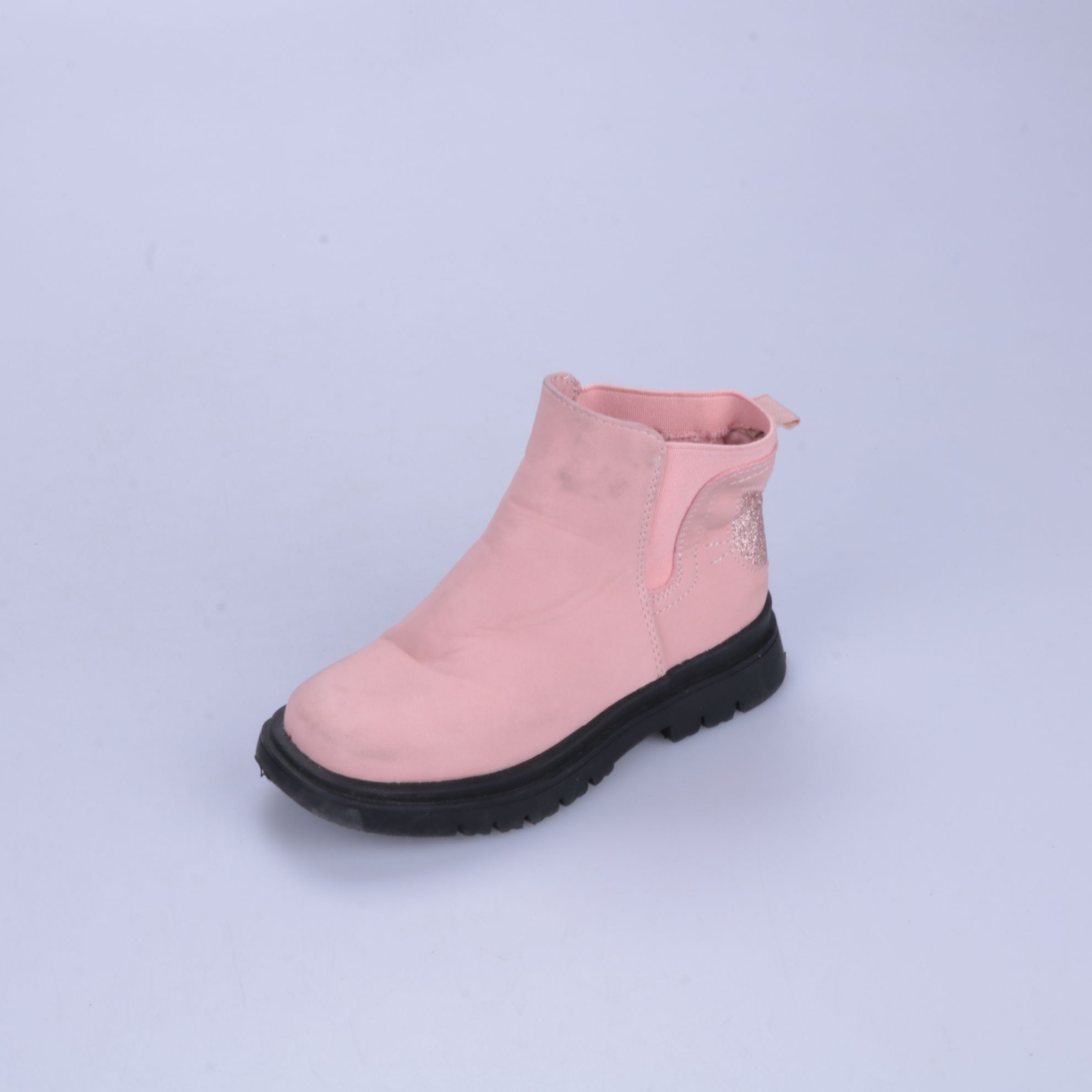 Демисезонные ботинки для девочки в нежно-розовом цвете с эластичными вставками по бокам и декоративным блестящим элементом на пятке. Подойдут для прогулок в прохладную погоду и на каждый день. Практичная рифлёная подошва помогает меньше скользить.