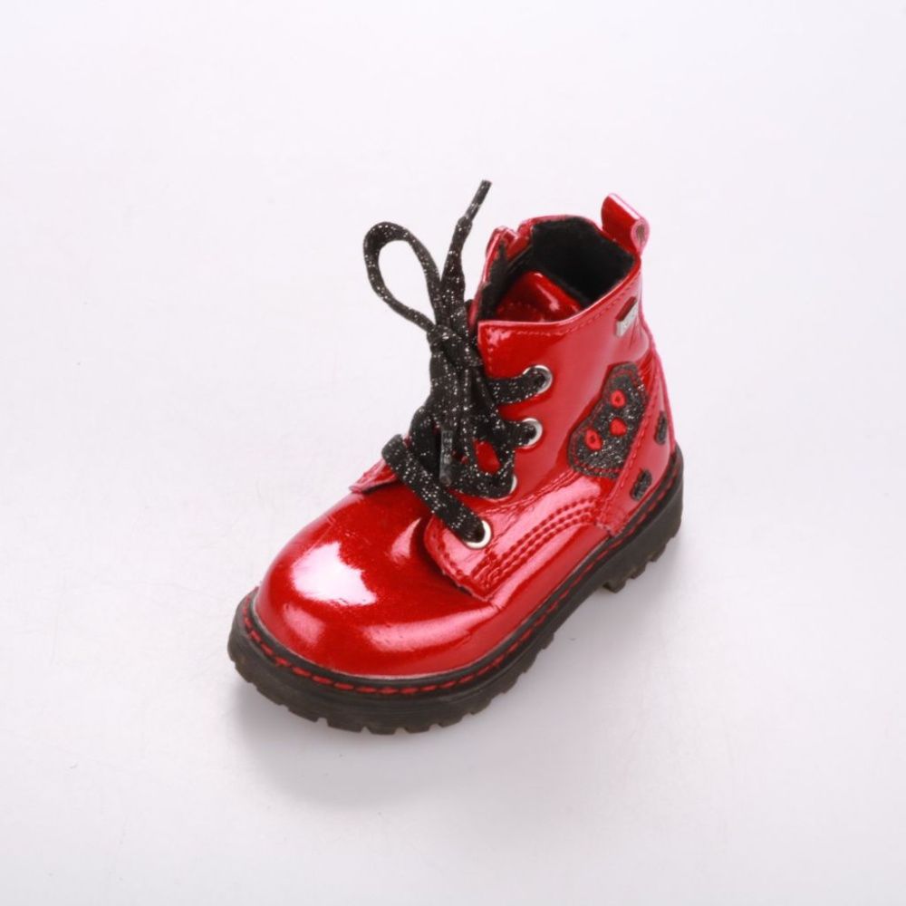 Детские ботинки для девочки из лаковой кожи (или эко-кожи) ярко-красного цвета, со шнуровкой и боковой молнией. Подойдут для прогулок в прохладную погоду весной и осенью, хорошо смотрятся с джинсами и платьями. Рифлёная подошва помогает меньше скользит...