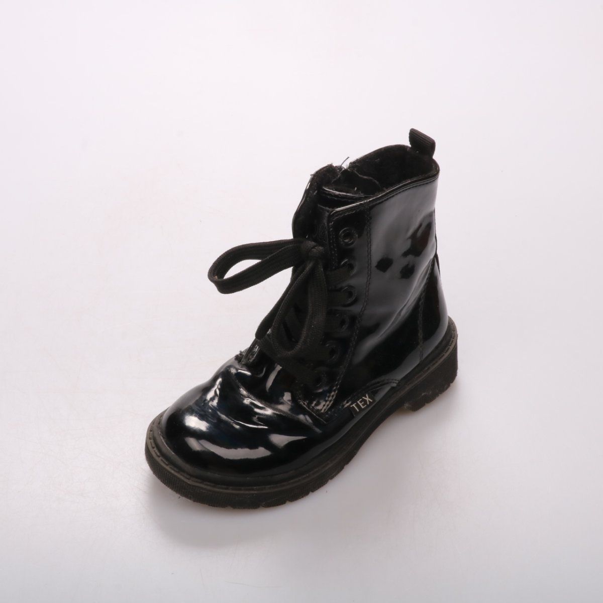 Детские лакированные ботинки Tex на шнуровке и с боковой молнией. Подойдут для школы и прогулок в прохладную погоду. Удобно быстро надевать за счёт молнии, подошва плотная и устойчивая.
