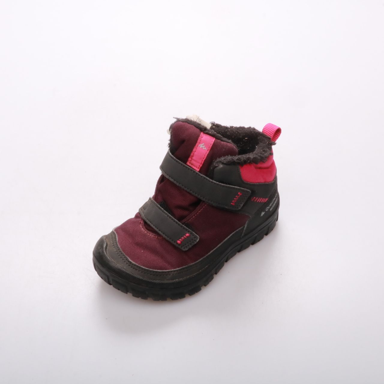 Детские утеплённые ботинки Decathlon SH100 Warm Scratch Mid Junior в бордово-розовом цвете, на двух липучках и с тёплой подкладкой. Подойдут для зимних прогулок и активных игр на улице. Липучки помогают быстро надевать обувь, а рельефная подошва даёт х...