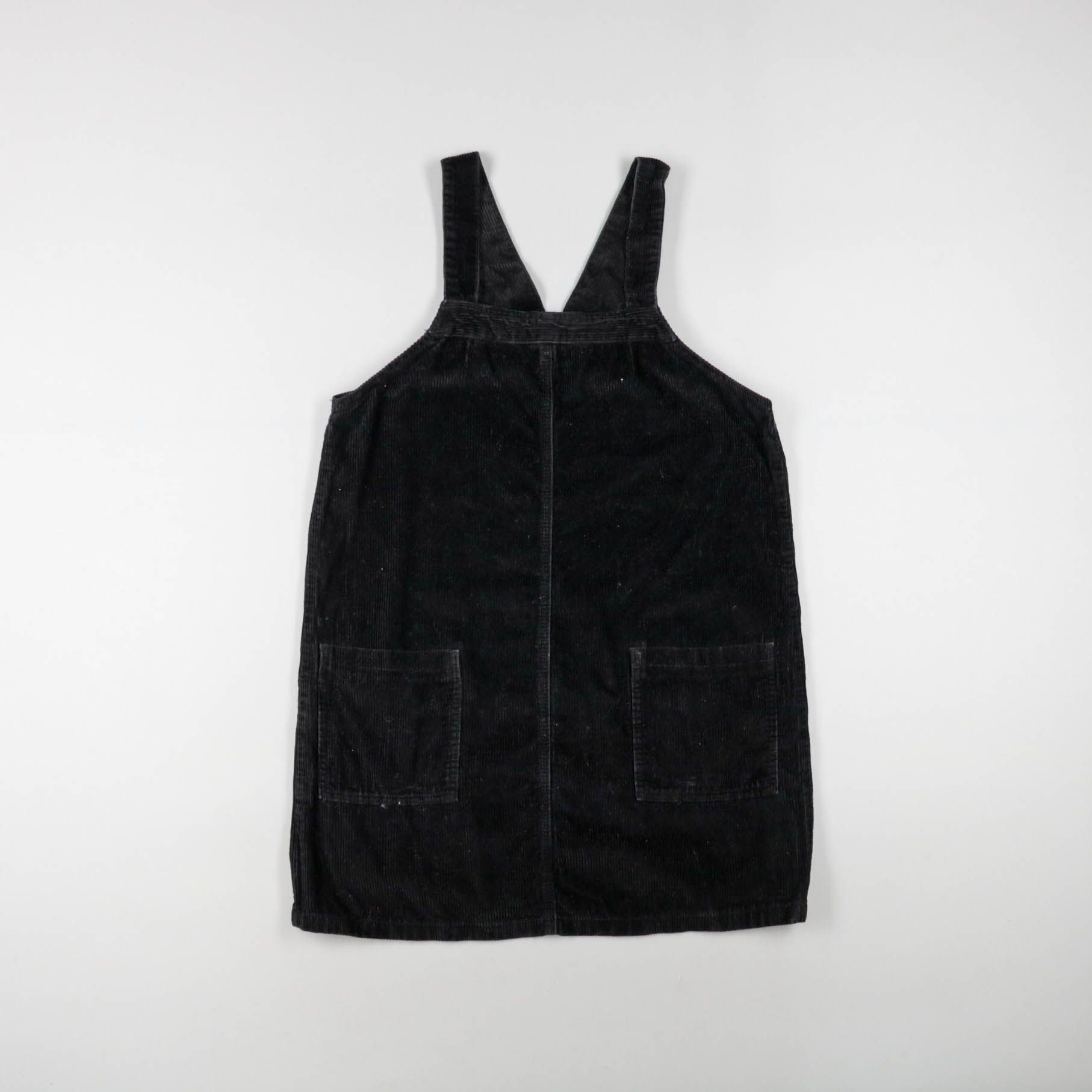 Черный сарафан-платье для девочки из плотной ткани в рубчик, с широкими лямками и накладными карманами спереди. Подойдет для сада, школы или прогулок — удобно носить с водолазкой, лонгсливом или футболкой. Практичный темный цвет и карманы делают вещь у...