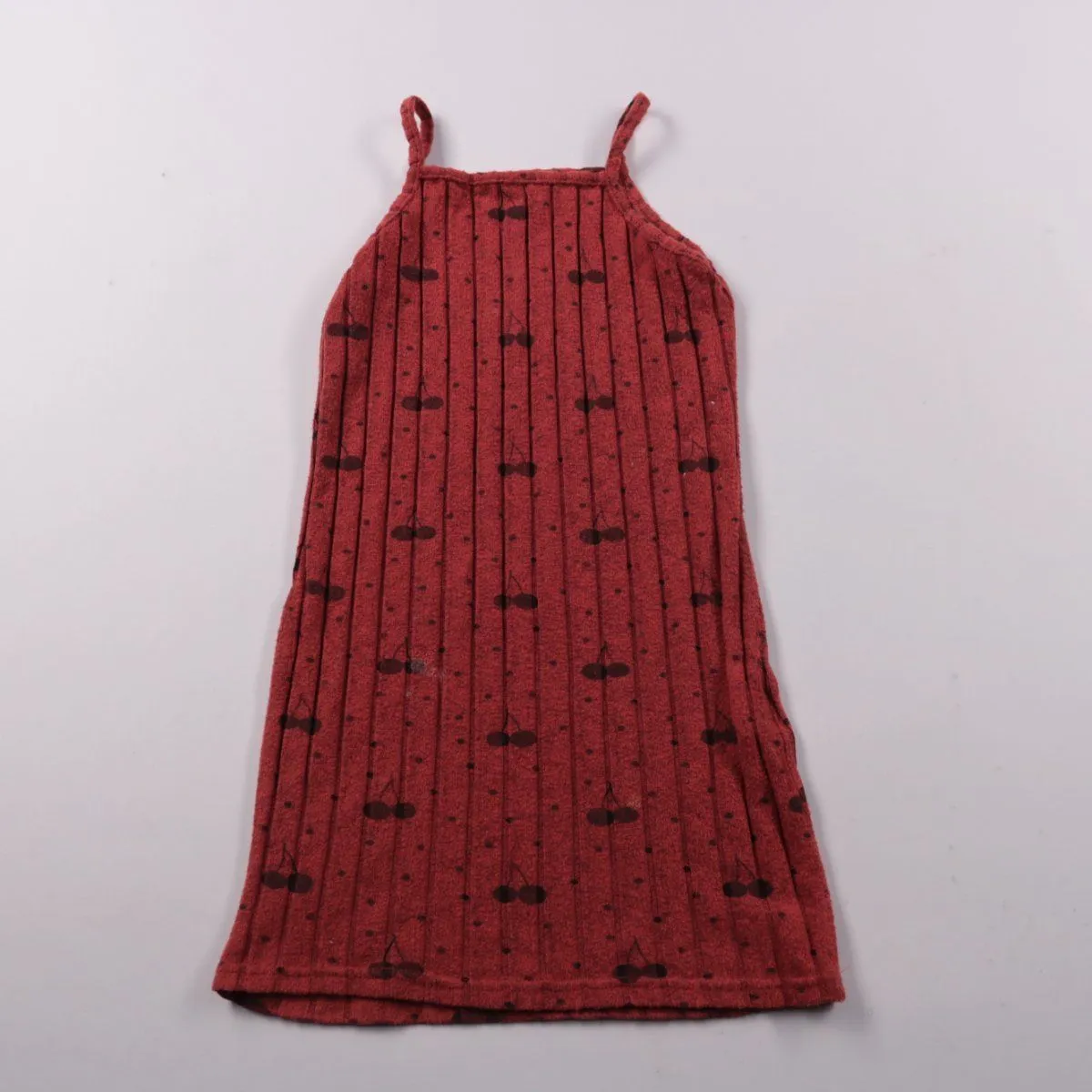 Детское платье на тонких бретелях, бордового цвета с принтом (полоски и вишенки). Подойдёт для тёплой погоды, прогулок и повседневной носки. Трикотаж тянется и не стесняет движений, удобно надевать и носить целый день.