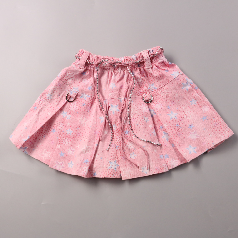 Детская юбка для девочки в розовом цвете с принтом звёзд и эластичным поясом на кулиске. Подойдёт для прогулок и летних праздников, хорошо сочетается с футболками и топами. Пояс на резинке удобно садится по талии и не сковывает движения.
