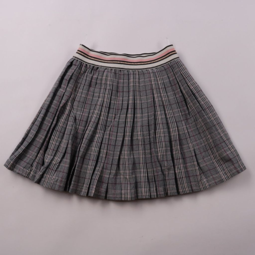 Юбка C&A для девочки, плиссированная, в серую клетку с мягким эластичным поясом в полоску. Подойдёт для школы и на каждый день, хорошо сочетается с однотонными футболками и водолазками. Пояс тянется и удобно садится по талии.