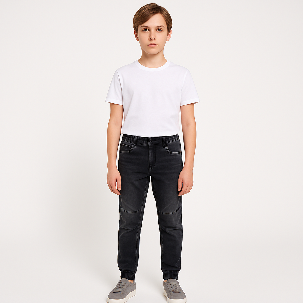Брюки YIGGA для мальчика, чёрные, с эластичным поясом и манжетами по низу. Подойдут для школы и повседневной носки в прохладную погоду. Ткань тянется и не сковывает движения, удобны в активный день.