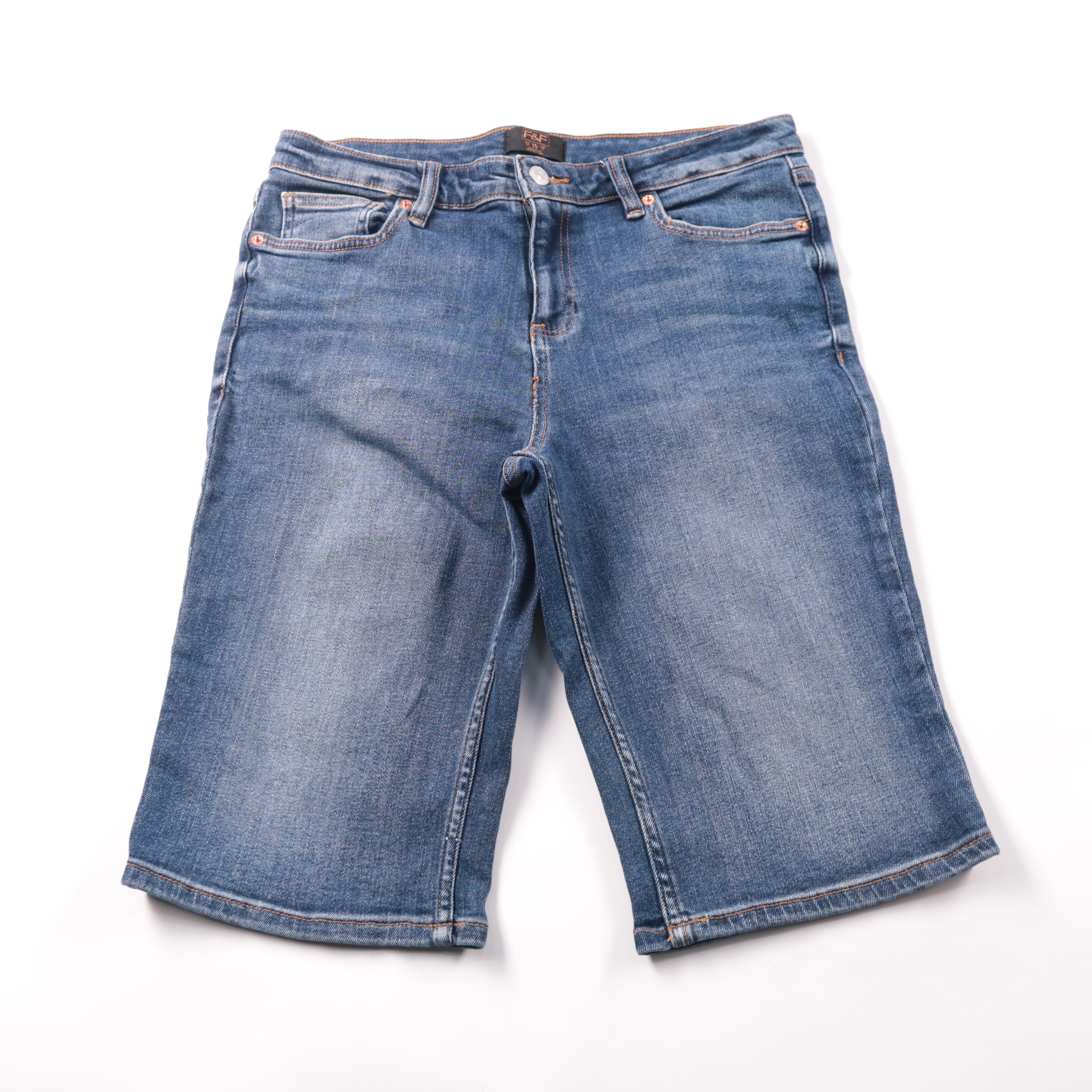 Джинсовые шорты F&F синего цвета, удобная посадка и классические карманы. Подойдут для повседневной носки летом и на отдыхе. Плотный деним со стрейчем хорошо держит форму и не сковывает движения.