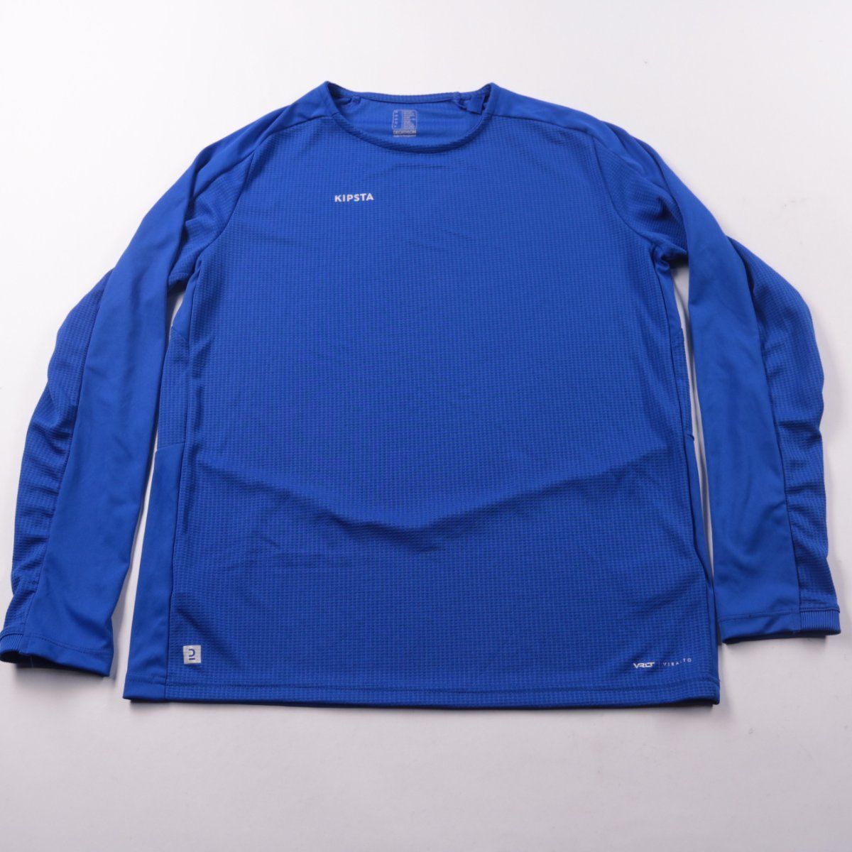Лонгслив Kipsta (Decathlon) синего цвета из спортивного синтетического материала. Подойдёт для тренировок и активных игр в зале или на улице в прохладную погоду. Ткань быстро сохнет и удобна как базовый слой.