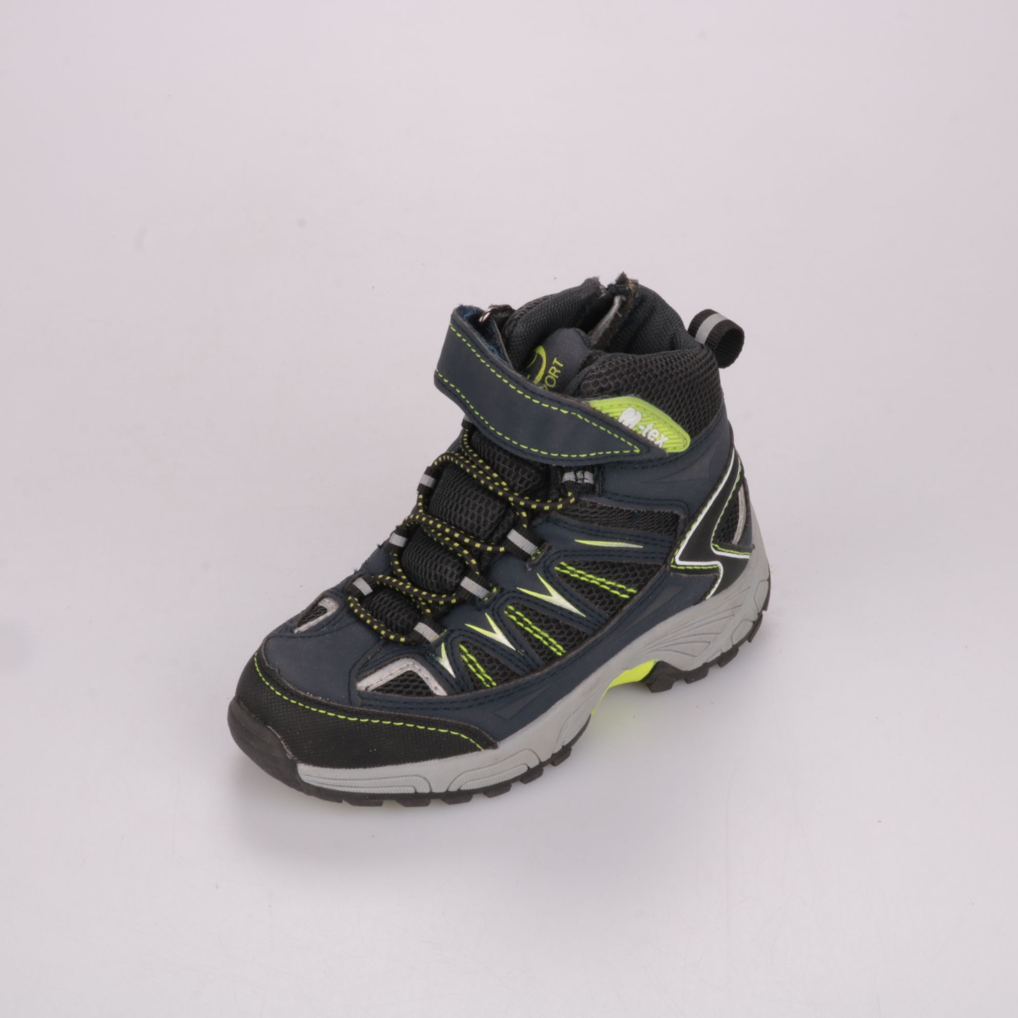 Детские демисезонные ботинки Rafen в тёмно-синем цвете с салатовыми акцентами и высокой фиксацией голеностопа. Подойдут для прогулок и активных игр в прохладную погоду, застёжка на липучке и молния сбоку помогают быстро обуваться. Рифлёная подошва обес...