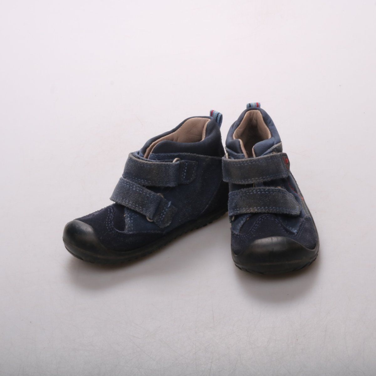 Детские кроссовки Elefanten синего цвета на двух липучках, с закрытым носком и резиновой защитной накладкой спереди. Подойдут для повседневных прогулок в демисезон. Липучки позволяют быстро надевать и регулировать посадку по ноге.