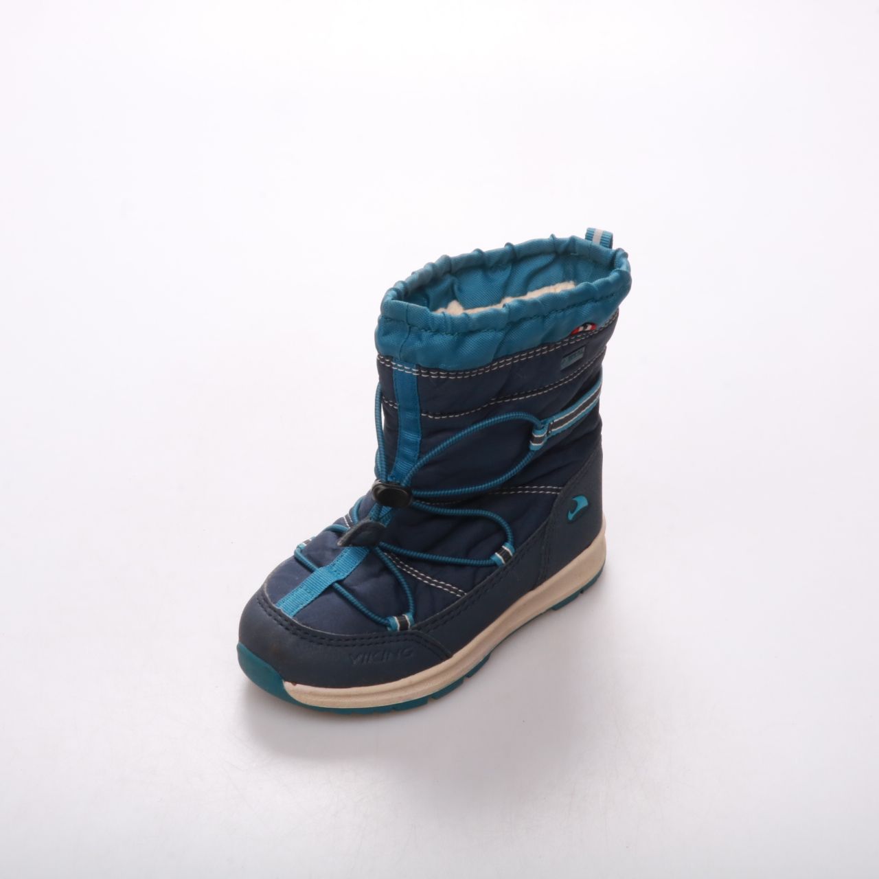 Зимние сапоги Viking в синем цвете с утяжкой на шнурке и фиксатором. Подойдут для прогулок в холодную погоду и по снегу, внутри тёплая подкладка. Рельефная подошва помогает уменьшить скольжение на улице.