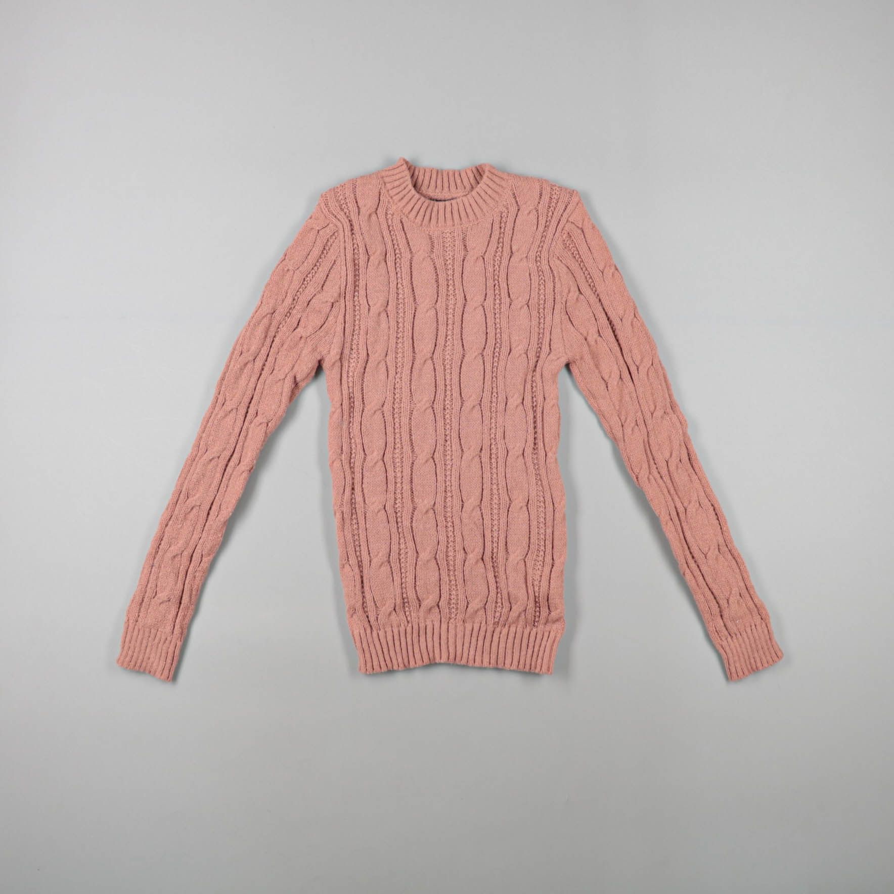 Вязаный свитер с косами без указания бренда, мягкий и приятный на ощупь. Подойдёт для школы и прогулок в прохладную погоду, удобно носить с рубашкой или футболкой. Хорошо сохраняет тепло и не сковывает движения.