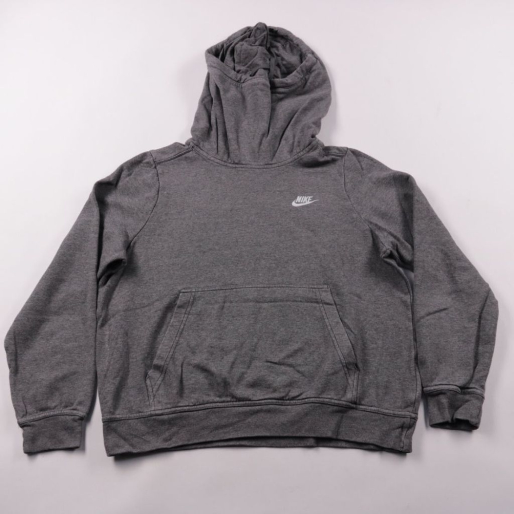 Толстовка Nike серого цвета с капюшоном и карманом-кенгуру. Подойдёт для школы, прогулок и спорта в прохладную погоду. Мягкая ткань и удобные манжеты хорошо сохраняют тепло и не сковывают движения.