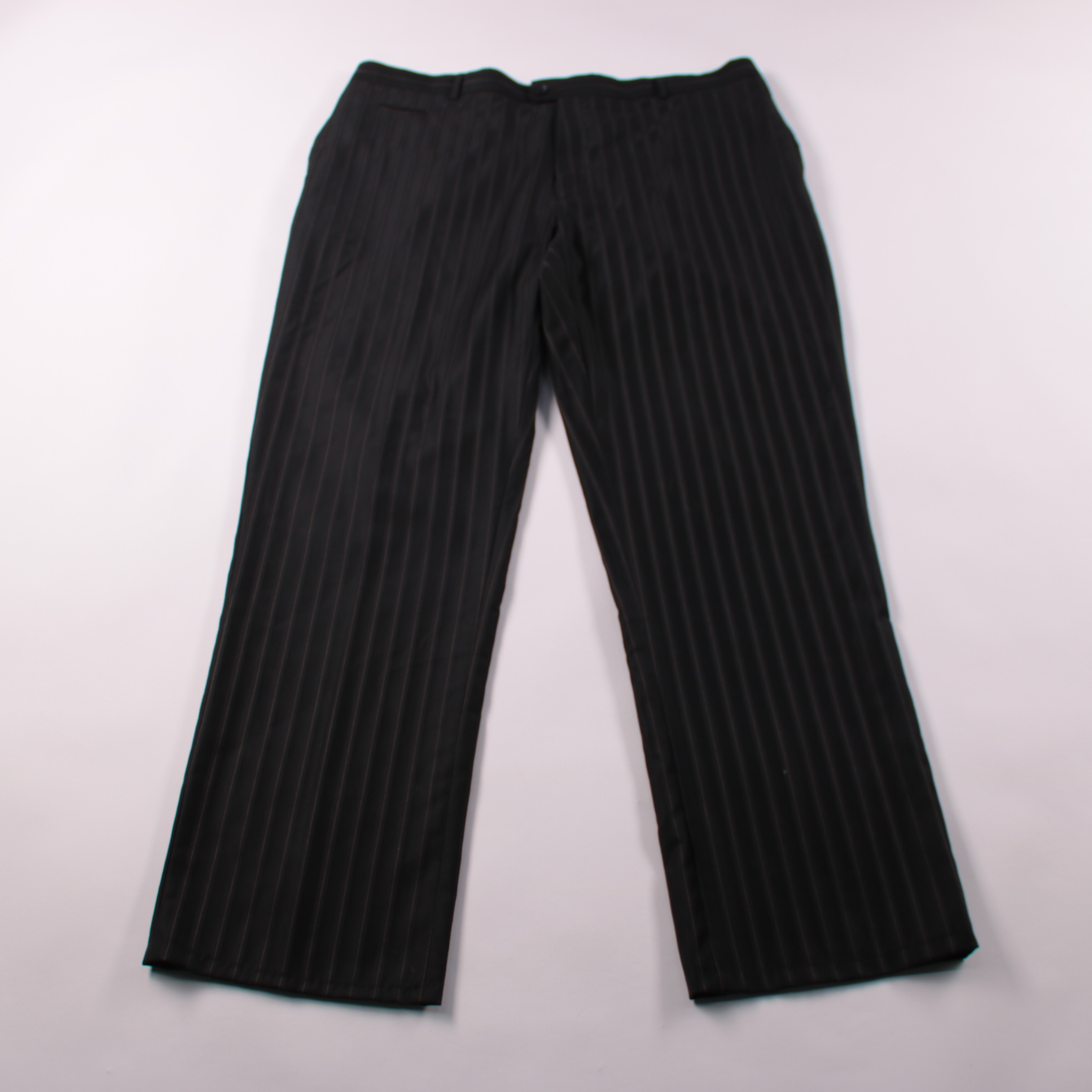 Мужские классические брюки Bonn чёрного цвета в тонкую полоску. Подойдут для офиса и деловых мероприятий, хорошо сочетаются с рубашкой и пиджаком. Смесовая ткань с шерстью лучше держит форму и меньше мнётся.