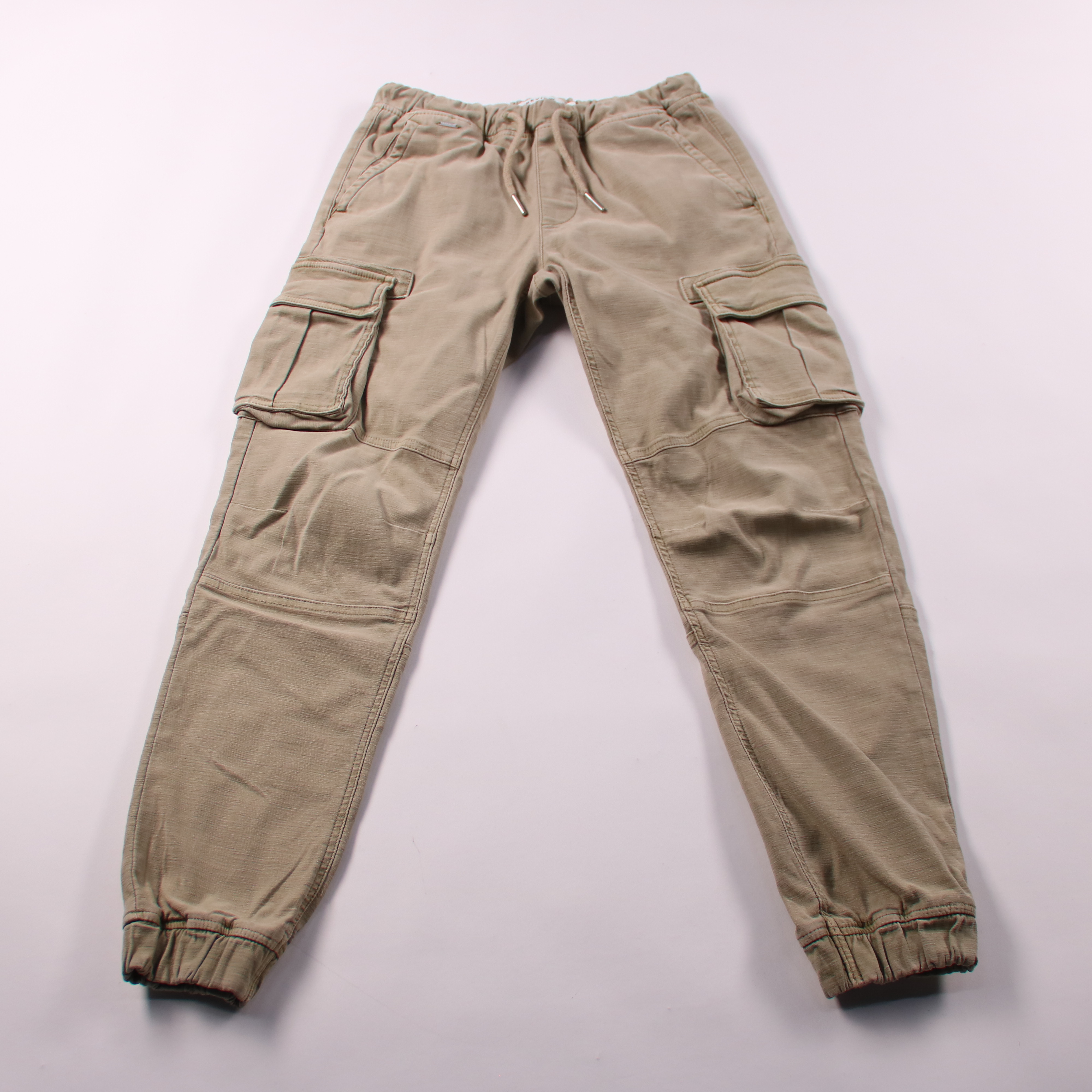 Мужские брюки-карго Review бежевого цвета с утяжкой на поясе и манжетами снизу. Подойдут для повседневной носки и прогулок в межсезонье, удобны за счёт посадки на резинке и множества карманов. Практичный плюс — плотная хлопковая ткань со стрейчем (97% ...