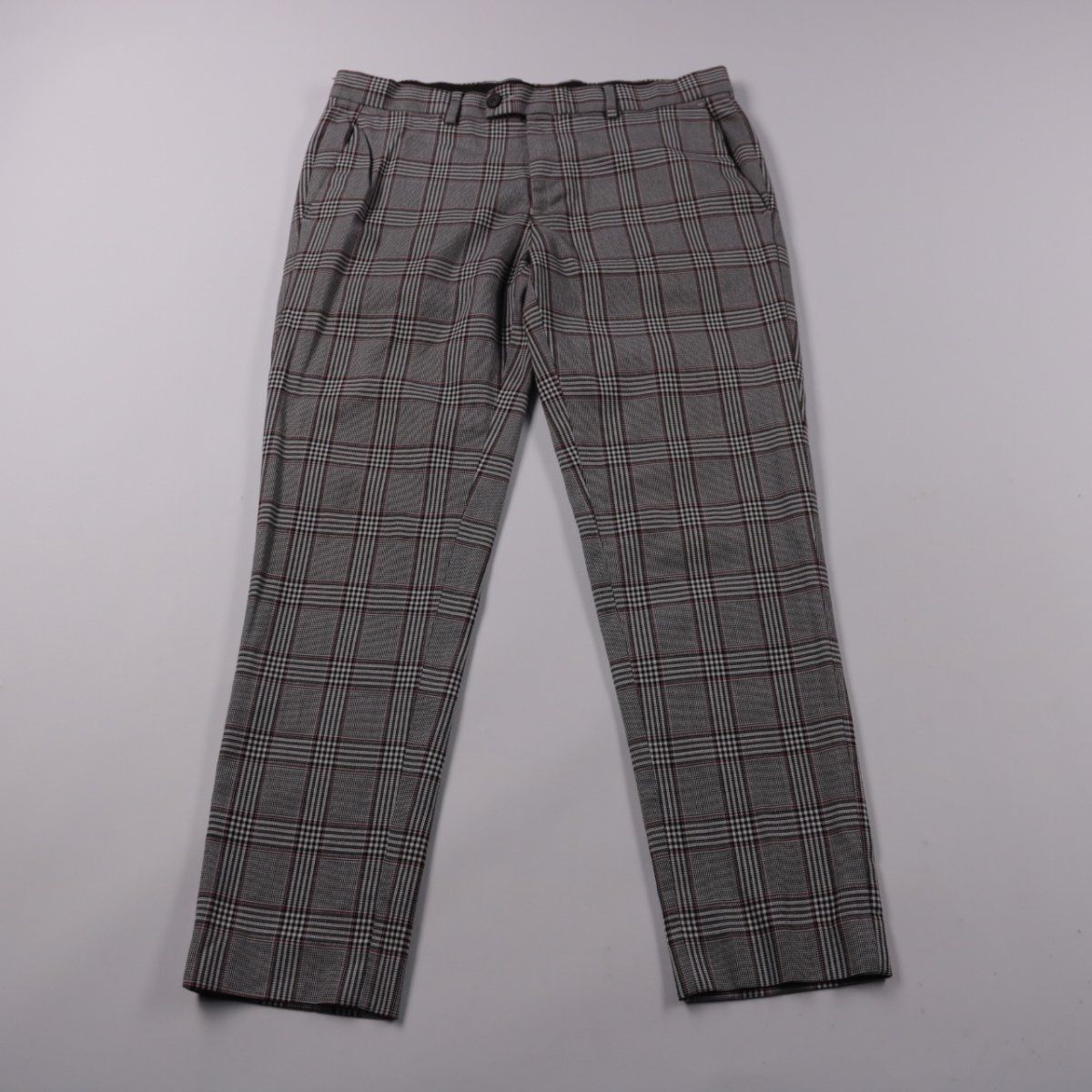 Мужские брюки River Island в серую клетку, с классической посадкой и аккуратными стрелками. Подойдут для офиса и повседневных образов с рубашкой или водолазкой. Практичный плюс — ткань с добавлением эластана меньше мнётся и комфортнее в носке.