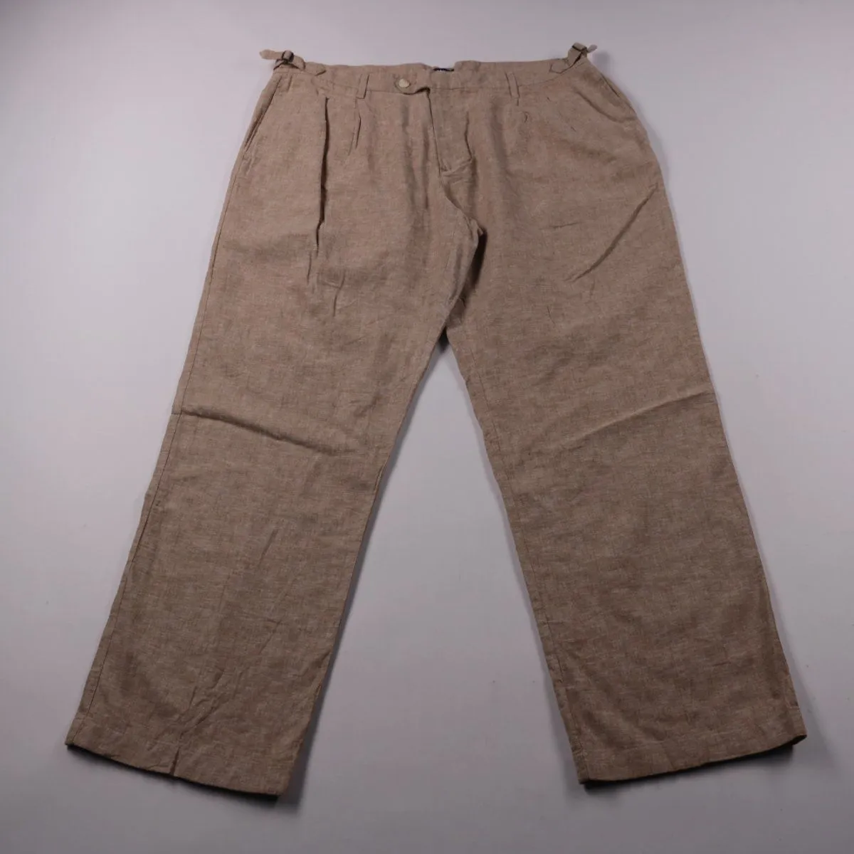 Мужские брюки Lands' End из льна с добавлением хлопка, в бежевом меланжевом цвете. Подойдут для лета и тёплой погоды, для города и отдыха. Ткань дышит и комфортна, а в уходе — обычная машинная стирка.