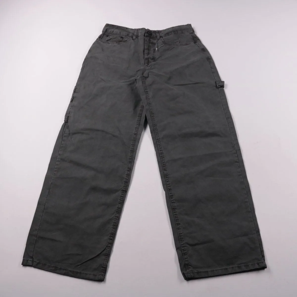 Мужские брюки карго BoohooMAN из плотного хлопка, тёмно-серого (графитового) цвета. Подойдут для повседневной носки и прогулок благодаря свободной посадке и боковым карманам. Практичный плюс — натуральный материал и удобные карманы для мелочей.
