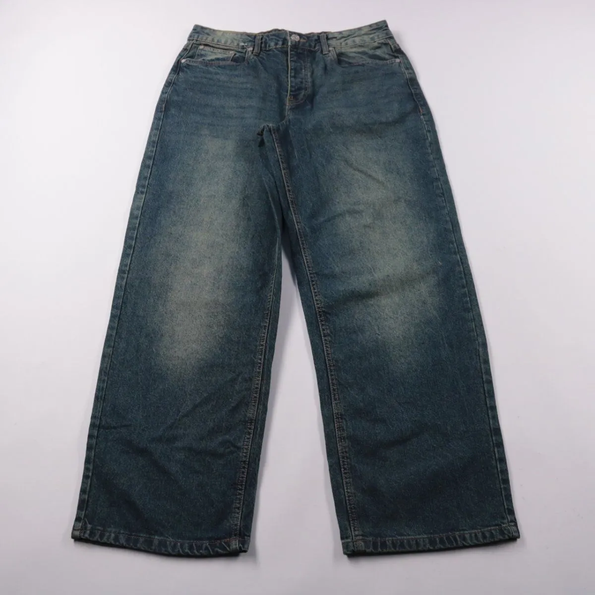 Мужские джинсы BoohooMAN из плотного денима синего цвета с эффектом лёгкой варки. Подойдут для повседневных образов с футболкой, худи или рубашкой в любой сезон. Прочный хлопковый материал хорошо держит форму и комфортен в носке.