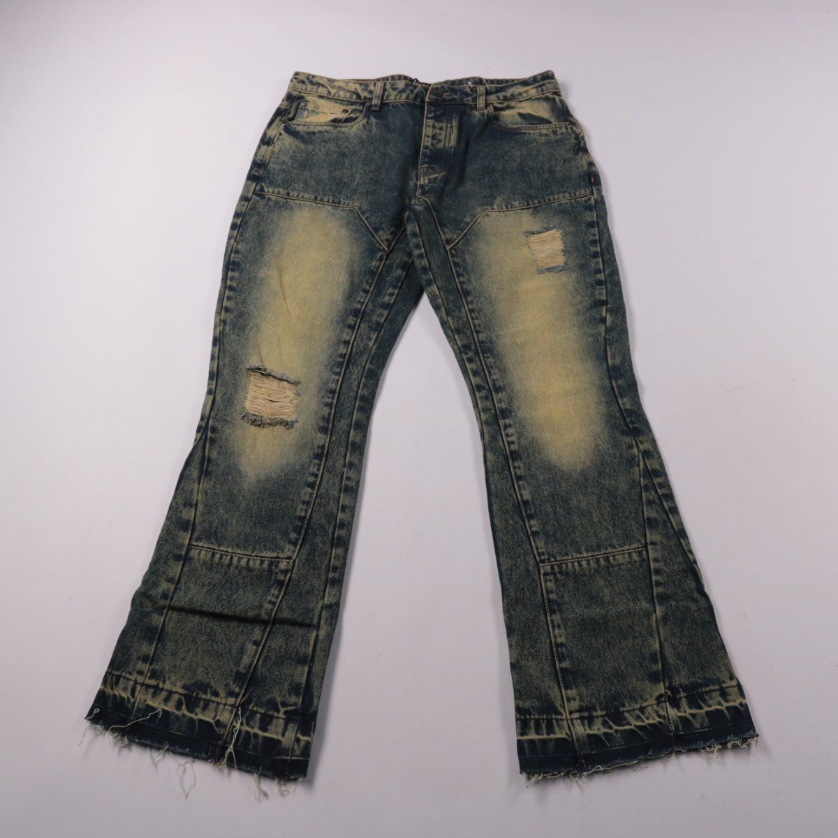Мужские джинсы BoohooMAN из плотного денима с эффектом варки и декоративными потертостями. Подойдут для повседневных образов в стиле casual/streetwear. Практичны в носке: плотный хлопок хорошо держит форму и не требует сложного ухода.