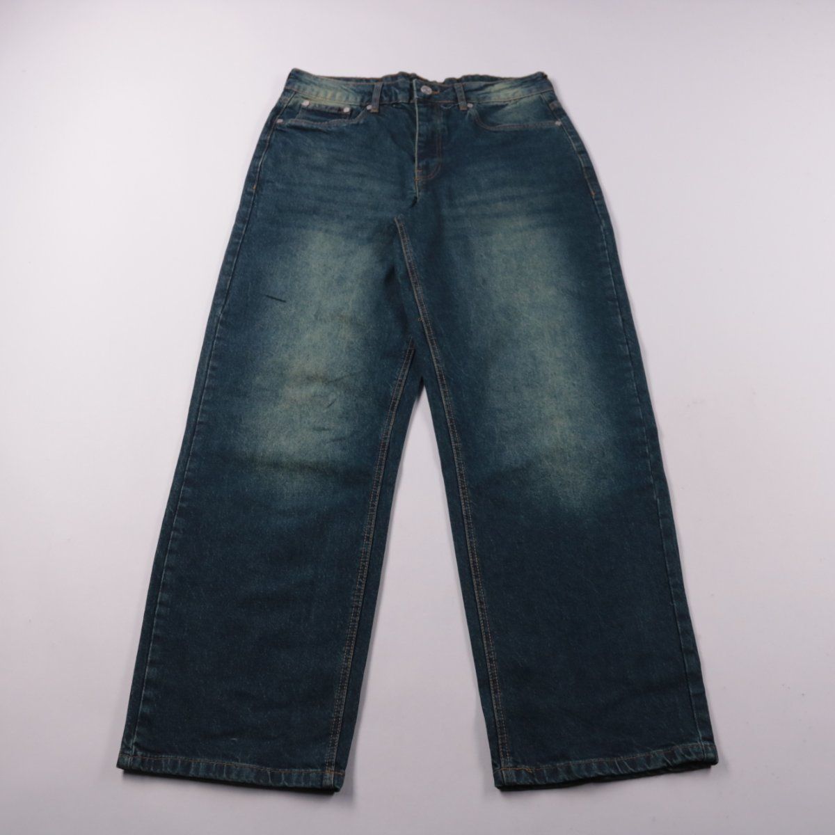 Мужские джинсы boohooMAN из синего денима с выраженным эффектом варки. Подойдут для повседневной носки и базовых образов в городе. Плотный хлопок хорошо держит форму и не требует сложного ухода.