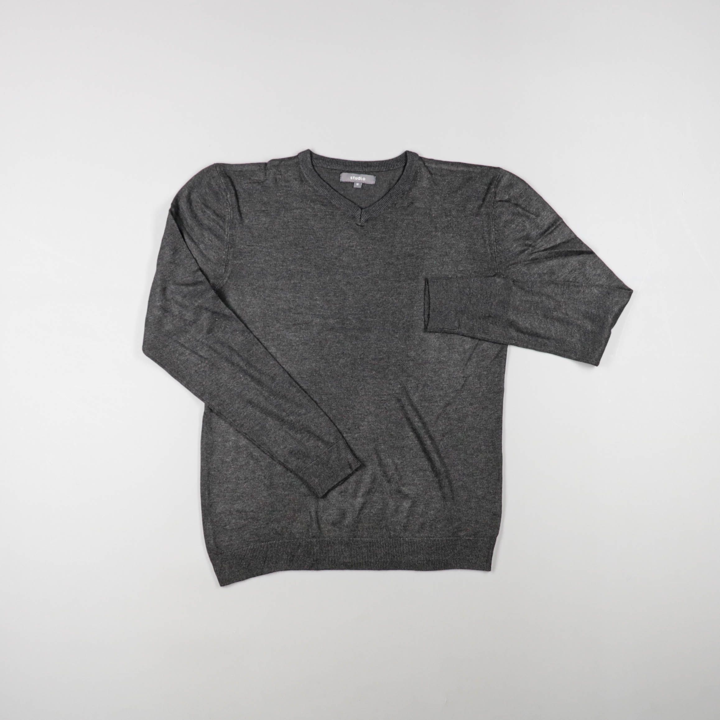 Мужской джемпер Studio тёмно-серого меланжевого цвета с V-образным вырезом и нагрудным карманом. Подойдёт для повседневных образов и офиса в прохладную погоду, удобно носить поверх рубашки или футболки. Практичный базовый цвет легко сочетать с джинсами...