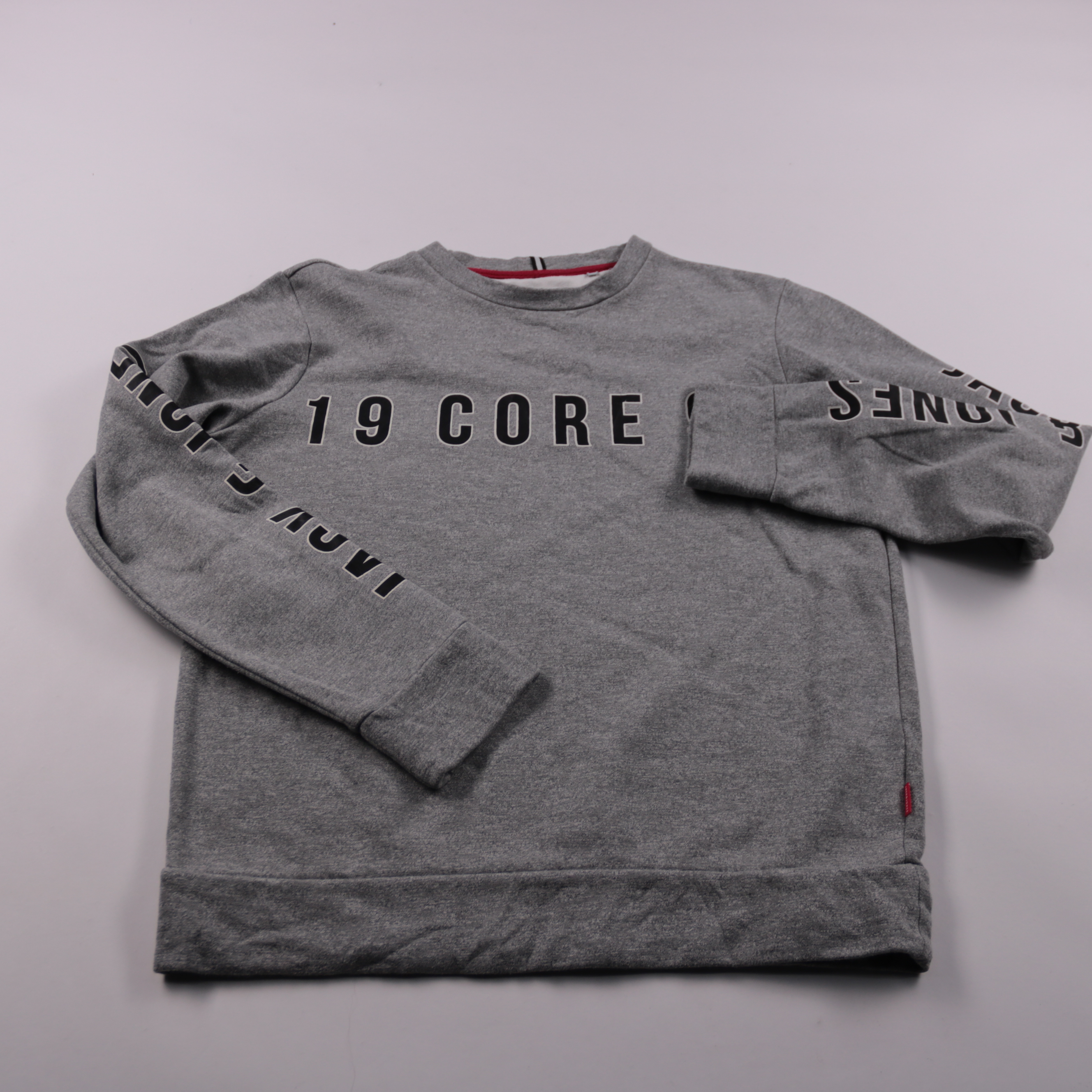 Мужской свитшот Jack & Jones CORE серого меланжевого цвета с крупным принтом спереди и надписями на рукавах. Подойдёт для повседневной носки в прохладную погоду и как средний слой под куртку. Мягкий футер комфортно сидит и прост в уходе.