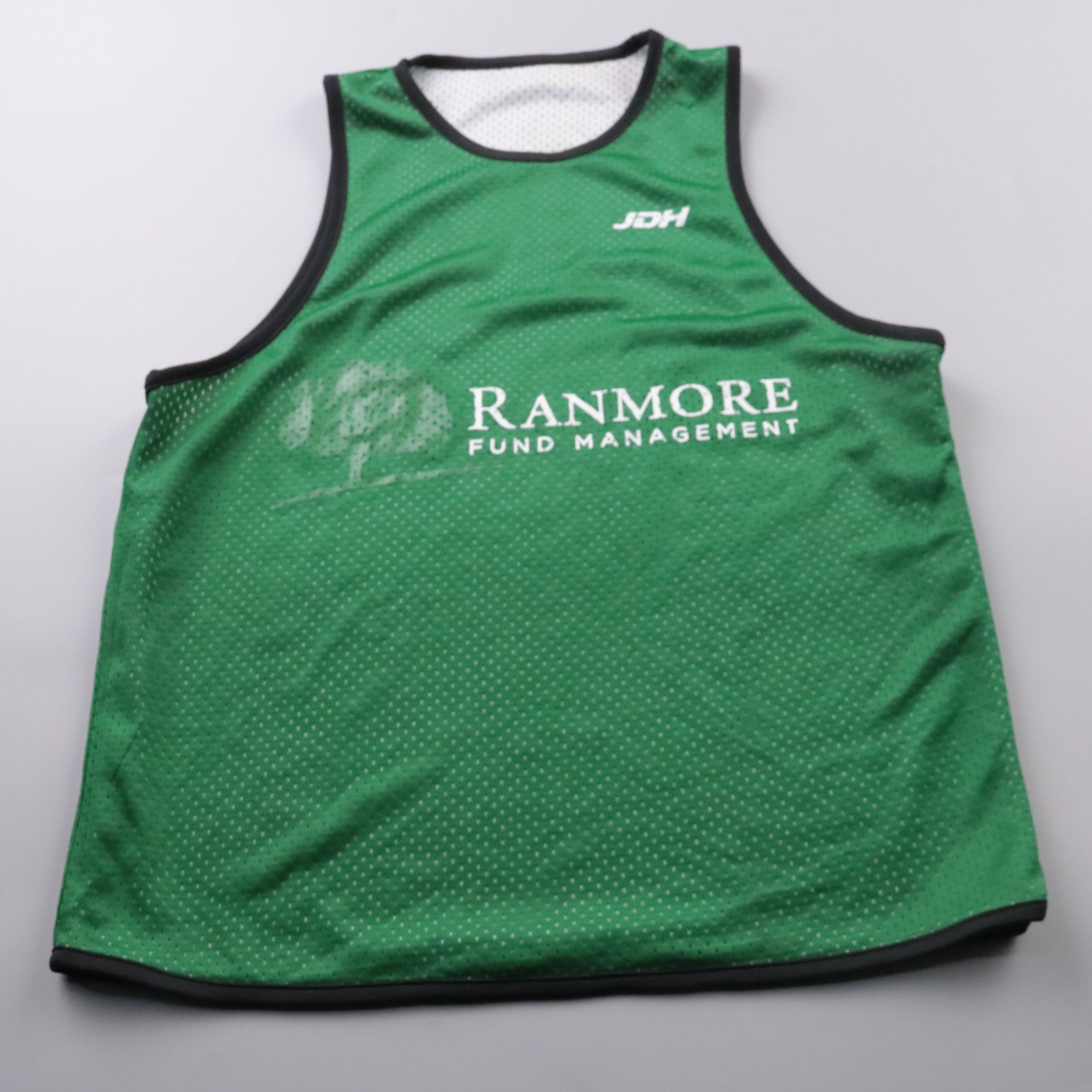 Спортивная майка JDH из сетчатого материала зелёного цвета с принтом Ranmore, хорошо подойдёт для тренировок и командных игр. Лёгкая ткань быстро сохнет и хорошо пропускает воздух, поэтому комфортна в зале и на улице.
