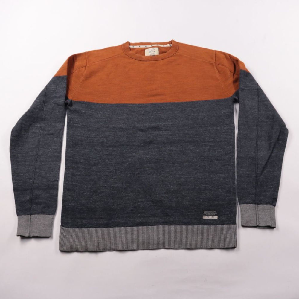 Мужской свитер Silver Creek в двухцветном дизайне (терракотовый верх и тёмно-серый низ) с круглым вырезом и эластичными манжетами. Подойдёт для повседневной носки в прохладную погоду и для офиса в стиле casual. Хлопковый материал приятен к телу и хорош...