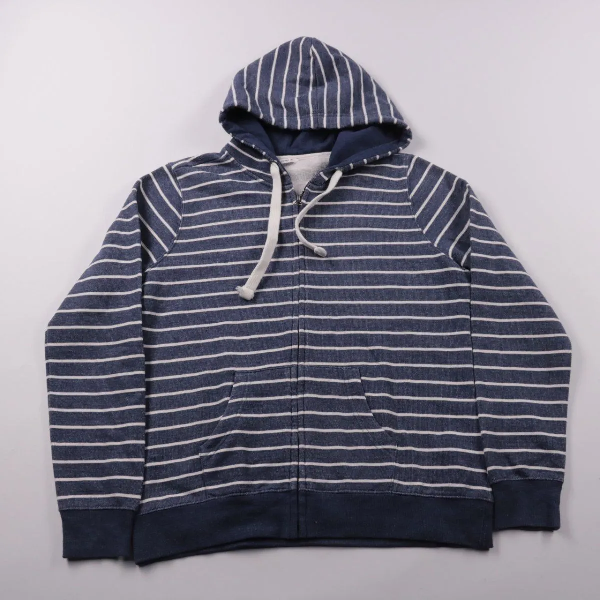 Мужское худи HEMA на молнии, в сине-белую полоску, с капюшоном и карманами-кенгуру. Подойдёт для повседневной носки и прогулок в прохладную погоду, удобно сочетать с джинсами и спортивными брюками. Мягкая утеплённая изнанка и застёжка-молния делают его практичным для слоёв и быстрого переодевания.