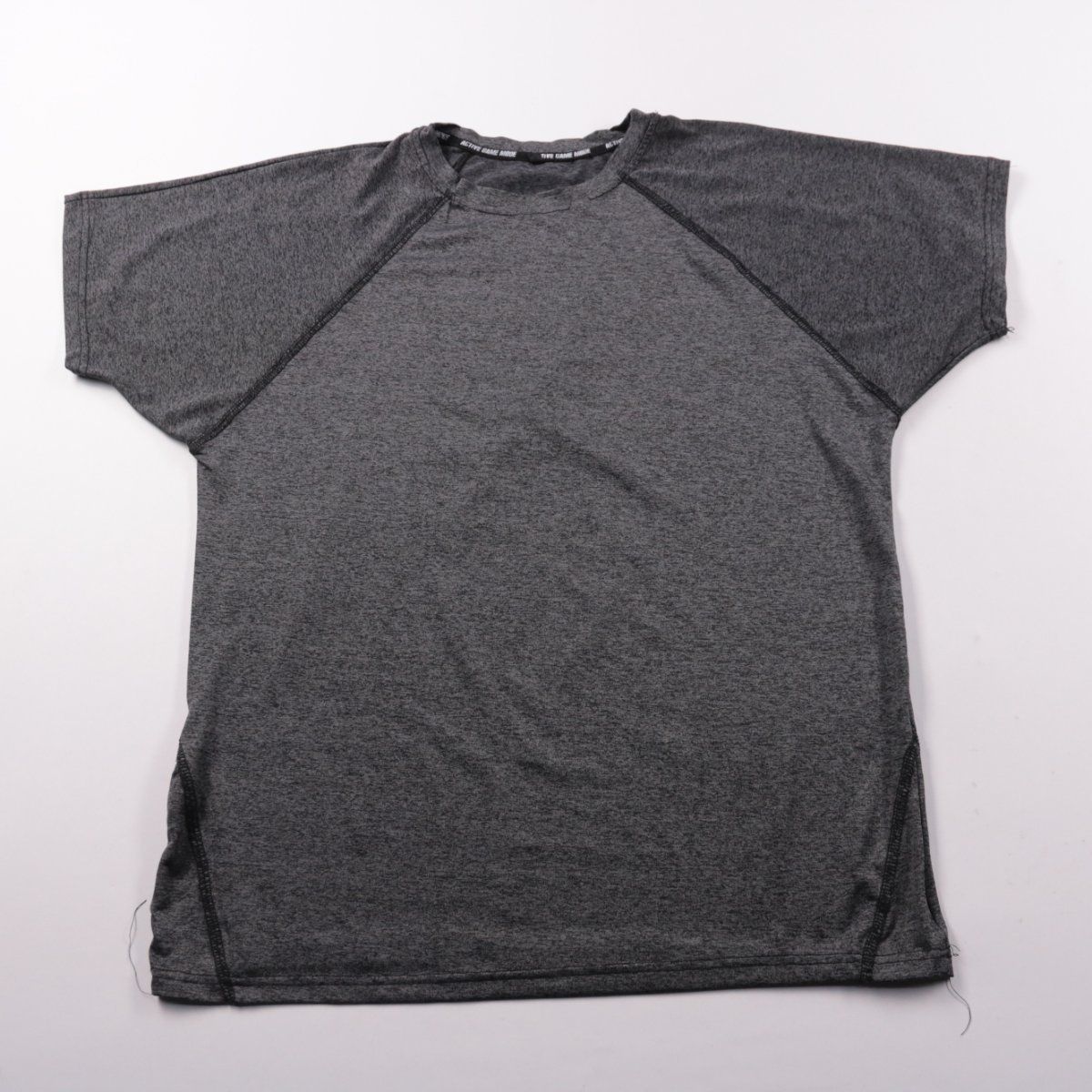Мужская футболка не указано тёмно-серого меланжа с реглан-рукавом и контрастными швами. Подойдёт для тренировок, пробежек и повседневной носки в тёплое время или как первый слой. Тонкий синтетический материал быстро сохнет и не сковывает движения.