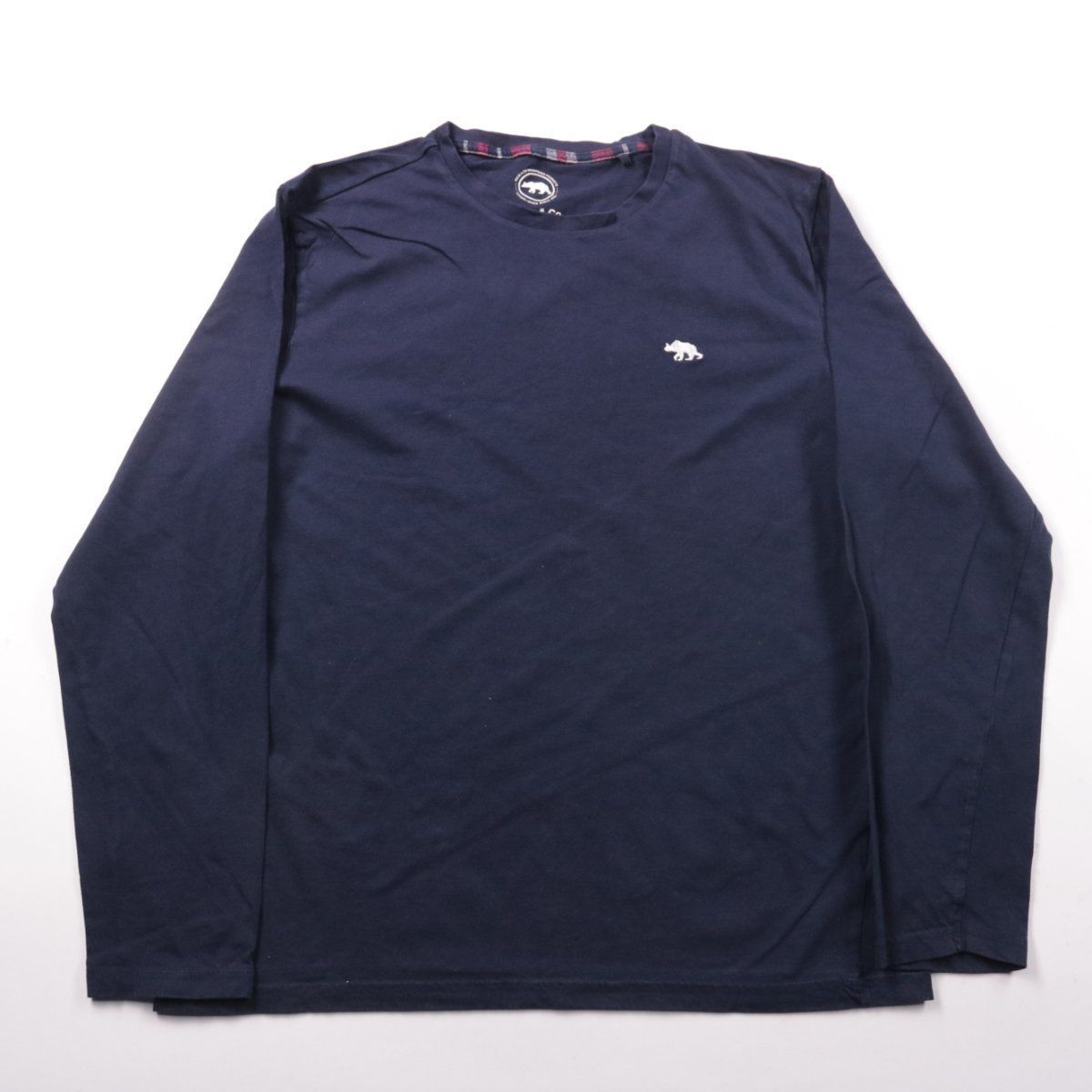 Мужская футболка с длинным рукавом Ridge & Co. в тёмно-синем цвете, с небольшим логотипом на груди. Подойдёт для повседневной носки и как базовый слой в прохладную погоду. Натуральный хлопок хорошо дышит и комфортен в течение дня.