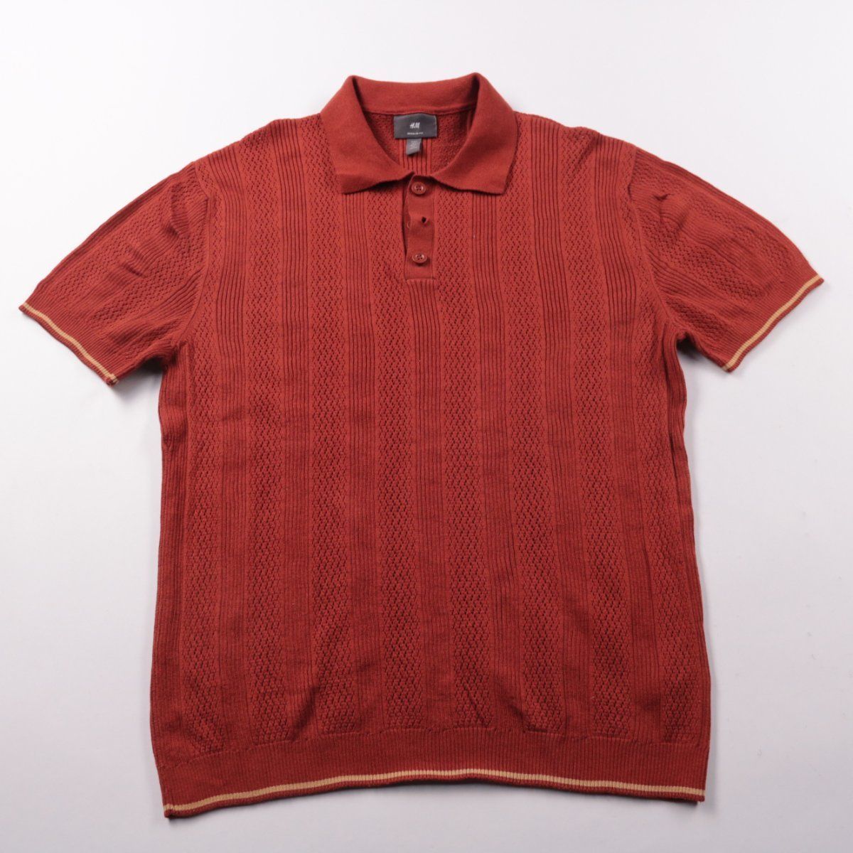 Мужское вязаное поло H&M Regular Fit бордового цвета с фактурной вертикальной вязкой и планкой на пуговицах. Подойдёт для повседневных образов и аккуратного casual в тёплую погоду. Трикотаж хорошо держит форму и выглядит интереснее базовой футболки.