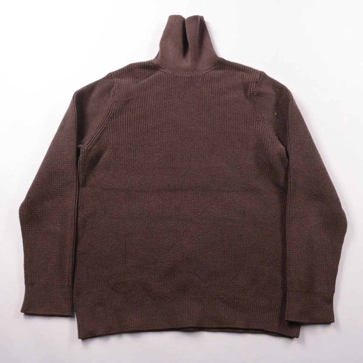 Мужской вязаный свитер H&M Regular Fit с высоким воротником-гольфом, цвет коричневый. Подойдёт для прохладной погоды и многослойных образов на каждый день. Практичный плюс — плотная вязка и смесовый состав, который хорошо держит форму.