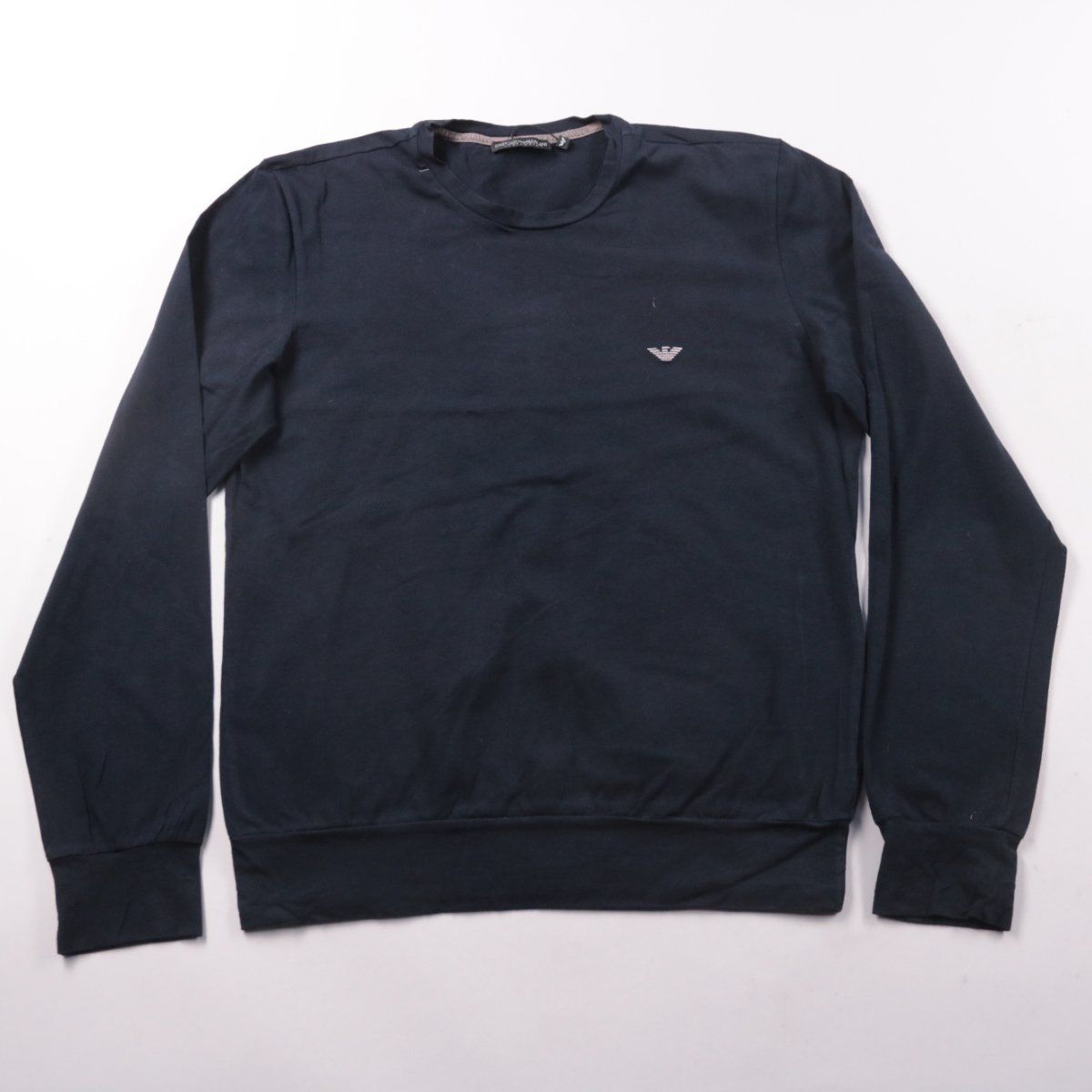 Мужской свитшот Emporio Armani Underwear тёмно-синего цвета с круглым вырезом и небольшим логотипом на груди. Подойдёт для повседневной носки и как базовый слой под куртку или пальто. Практичен тем, что легко сочетается и не требует сложного ухода.
