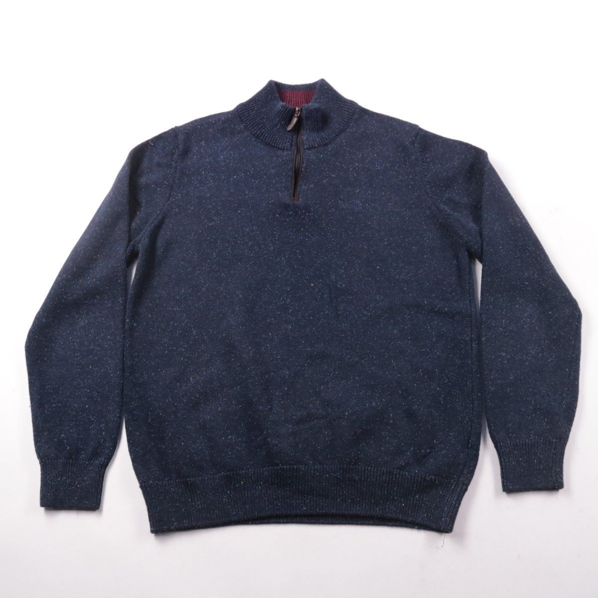 Мужской джемпер Benetti с воротником-стойкой и короткой молнией, тёмно-синий меланж. Подойдёт для повседневной носки и офисных образов в прохладную погоду. Смесь хлопка с акрилом и полиэстером делает вещь практичной и менее мнущейся.